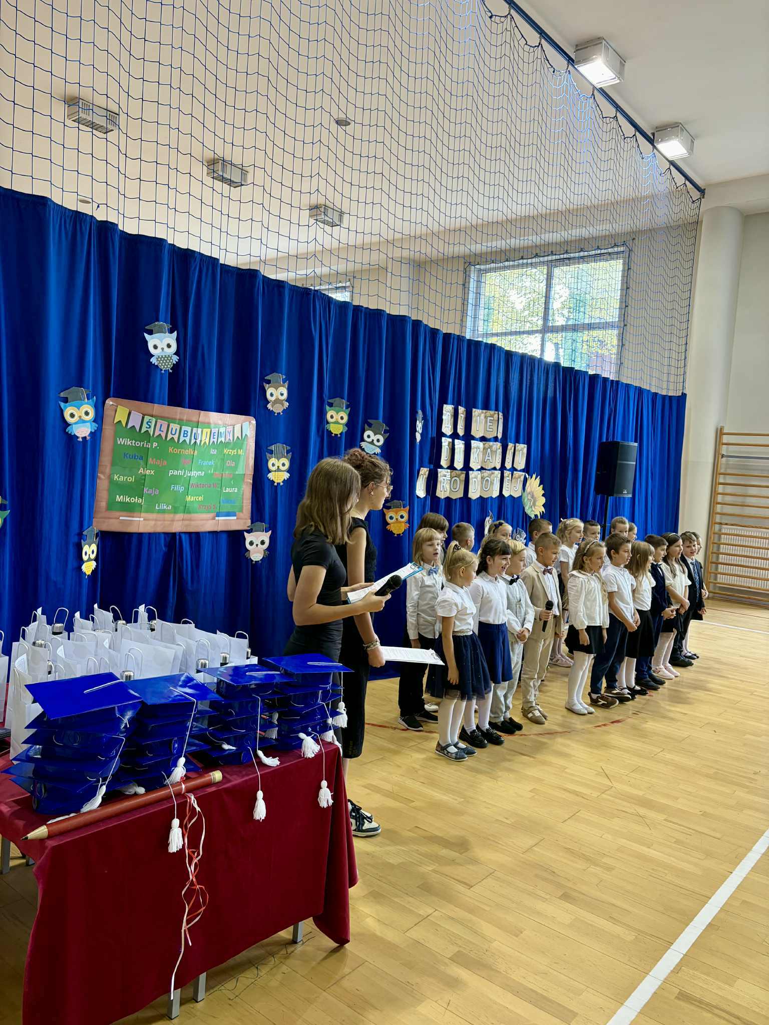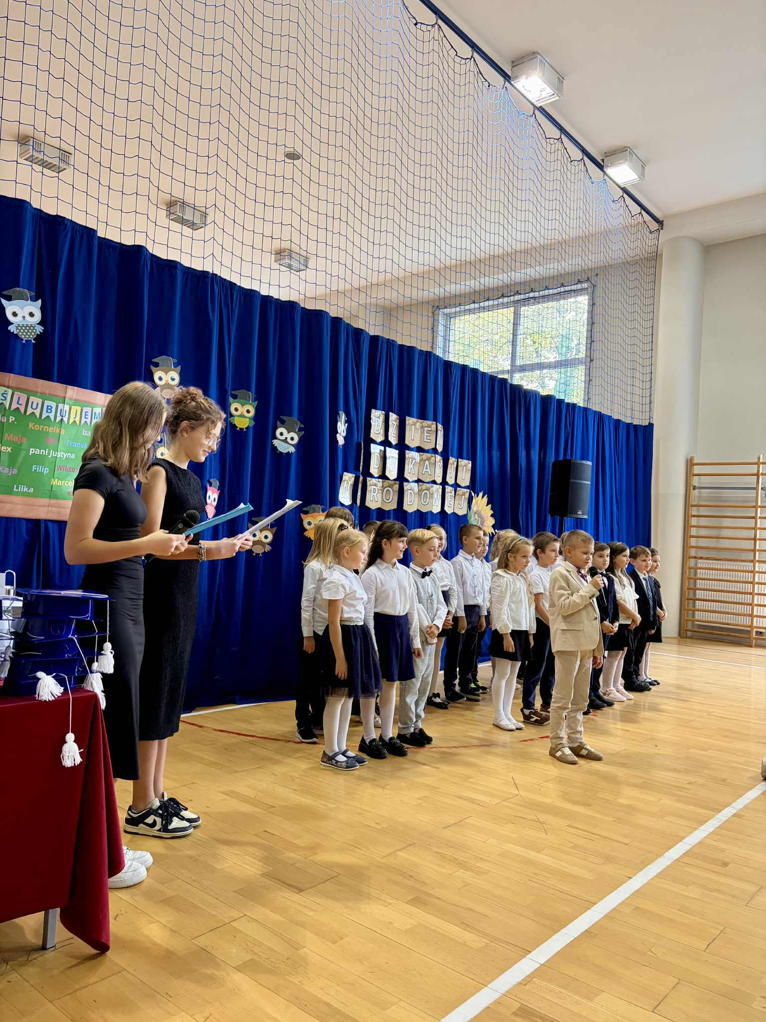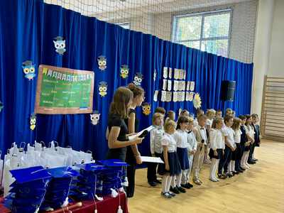 Pierwszoklasiści z dumą zaprezentowali swoje talenty, recytując wiersze, tańcząc i śpiewając piosenki, a następnie złożyli uroczyste ślubowanie. Od tej chwili stali się pełnoprawnymi uczniami naszej szkoły!