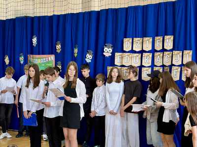 Z kolei uczniowie klasy siódmej przygotowali piękną część artystyczną z okazji Dnia Edukacji Narodowej - pełną wdzięczności, humoru i serdeczności. Swoim występem podziękowali nauczycielom i pracownikom szkoły za codzienny trud, cierpliwość i troskę o rozwój uczniów.