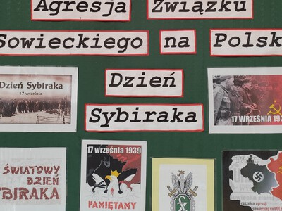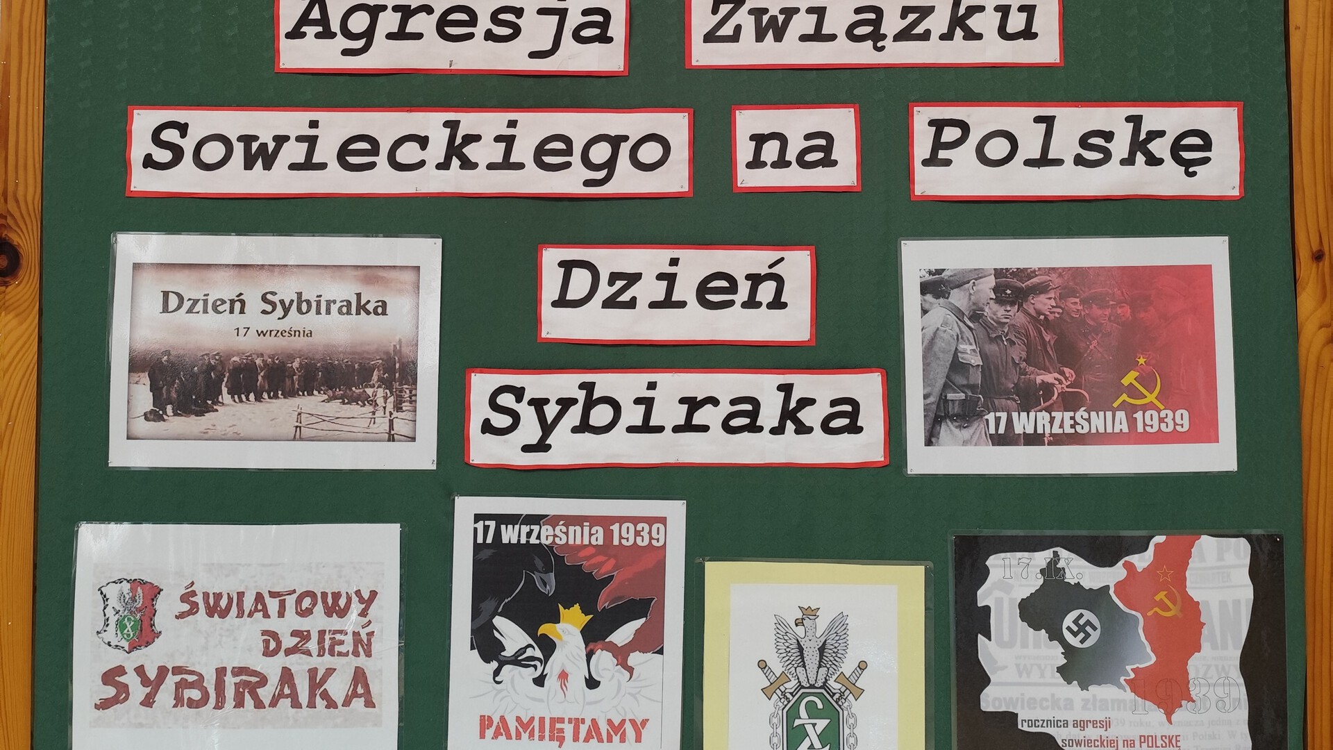 17 września obchodzimy Dzień Sybiraka, a także 86 rocznię upamiętniającą tragiczne wydarzenia związane z napaścią Związku Radzieckiego na Polskę w 1939 roku. W naszej szkole jak co roku pamiętamy o tych wydarzeniach poprzez wyeksponowanie specjalnej gazetki. Niech pamięć o tych ludziach wywiezionych na nieludzką ziemię i o tragicznych wydarzeniach związanych z napaścią wschodniego agresora, będą wciąż w naszej pamięci. C. Pacholarz |