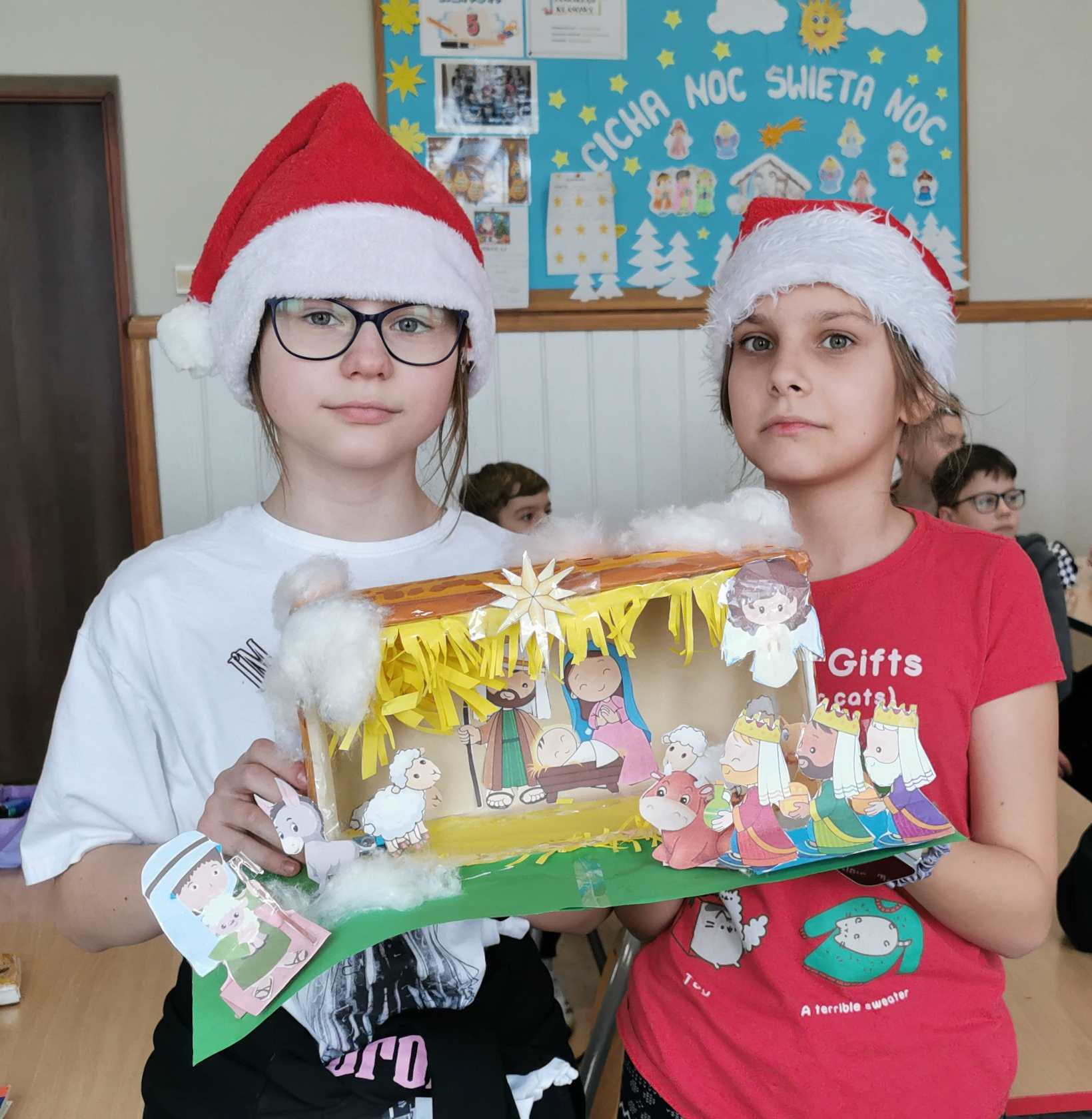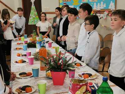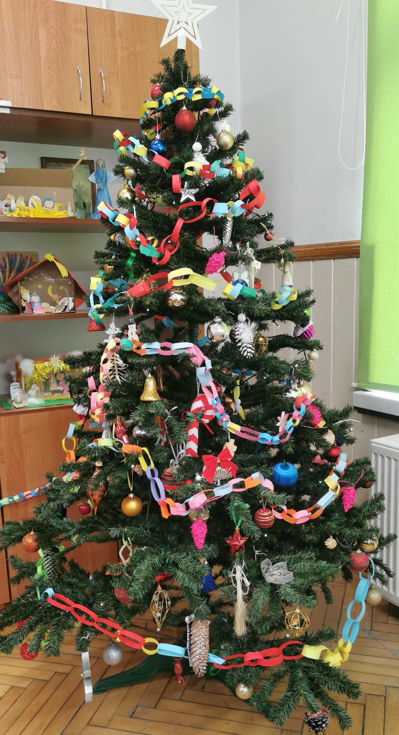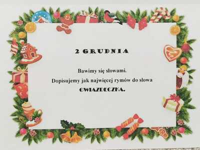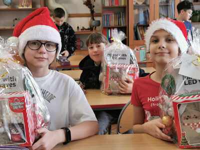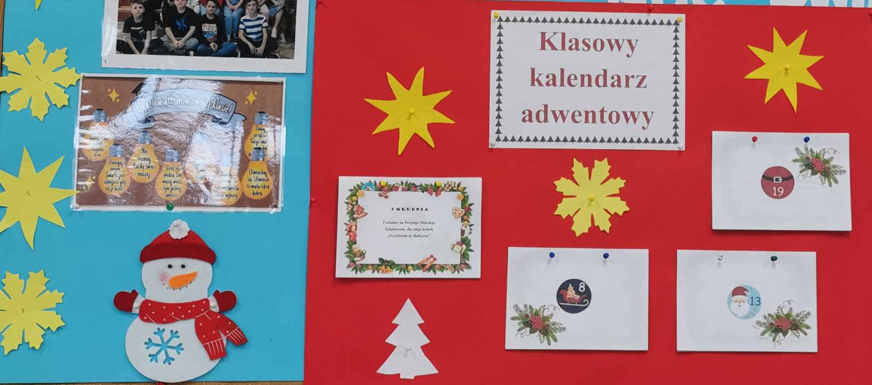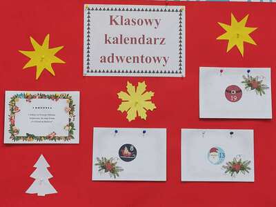 Uczniowie klasy 5 pod kierunkiem wychowawczyni, Ireny Szajewskiej, uczestniczyli w innowacji pedagogicznej pod nazwą „Klasowy Kalendarz Adwentowy”. Codziennie od 1 do 24 grudnia wykonywali kolejne zadania z kalendarza. Były to działania literacko-artystyczne mające na celu przede wszystkim integrację zespołu klasowego, rozwijanie kreatywności uczniów, wzmacnianie współpracy i odpowiedzialności. Zadania były różnorodne, np. dopisywanie rymów do wyrazu „gwiazdeczka”, układanie wierszyków o bałwanku, wystrój klasy – ubieranie choinki, wykonanie szopek i choinki z elementów, udział w wydarzeniach klasowych – Mikołajki, Wigilia, Święto Szkoły, wyjazd do teatru, zadania domowe – rodzinny spacer, pomaganie w przygotowaniach świątecznych. Wspólne klasowe działania bardzo się uczniom spodobały, chętnie angażowali się w kolejne zadania. Był to kreatywny i radosny czas oczekiwania na święta Bożego Narodzenia. /ISz/