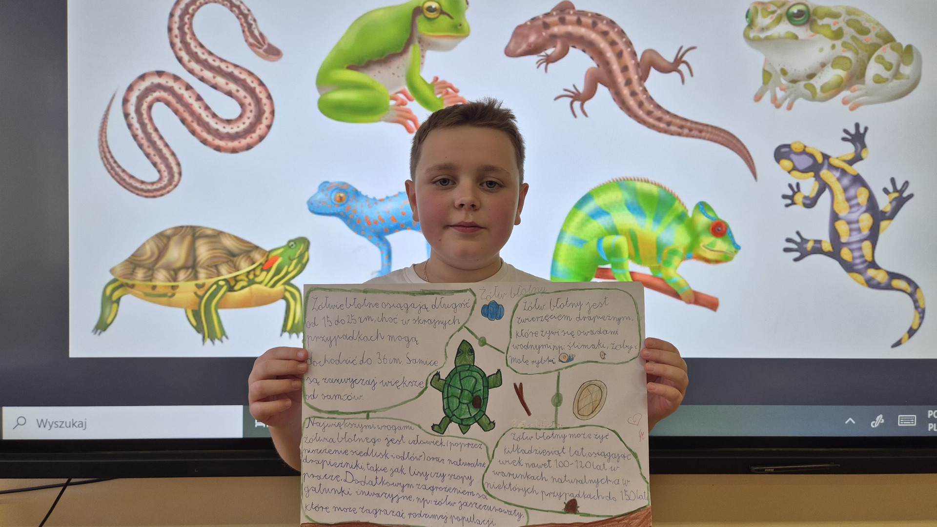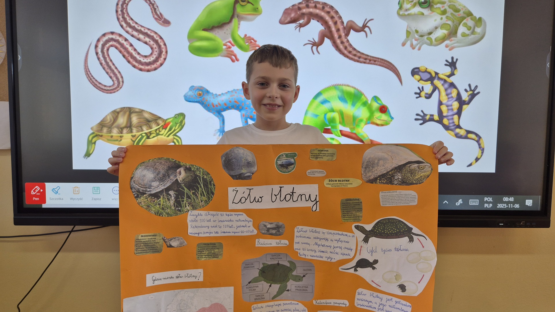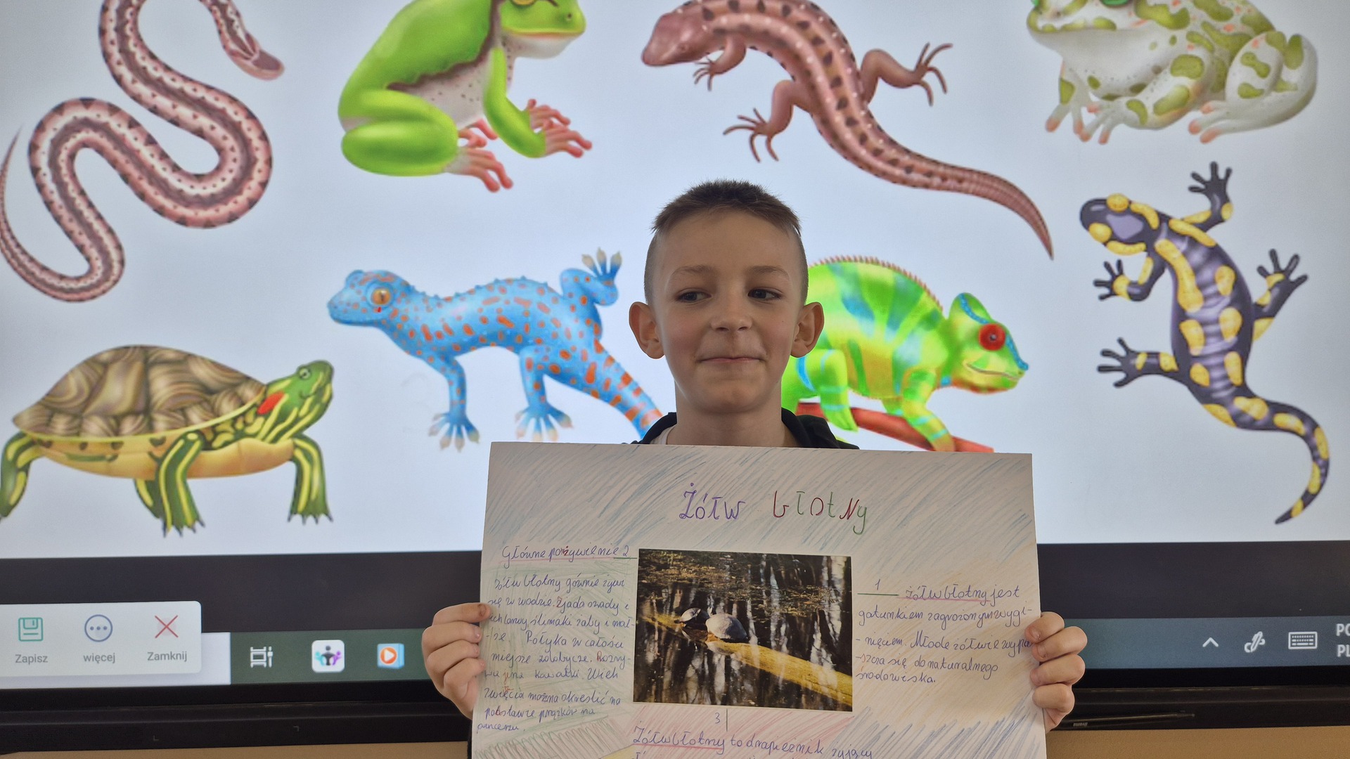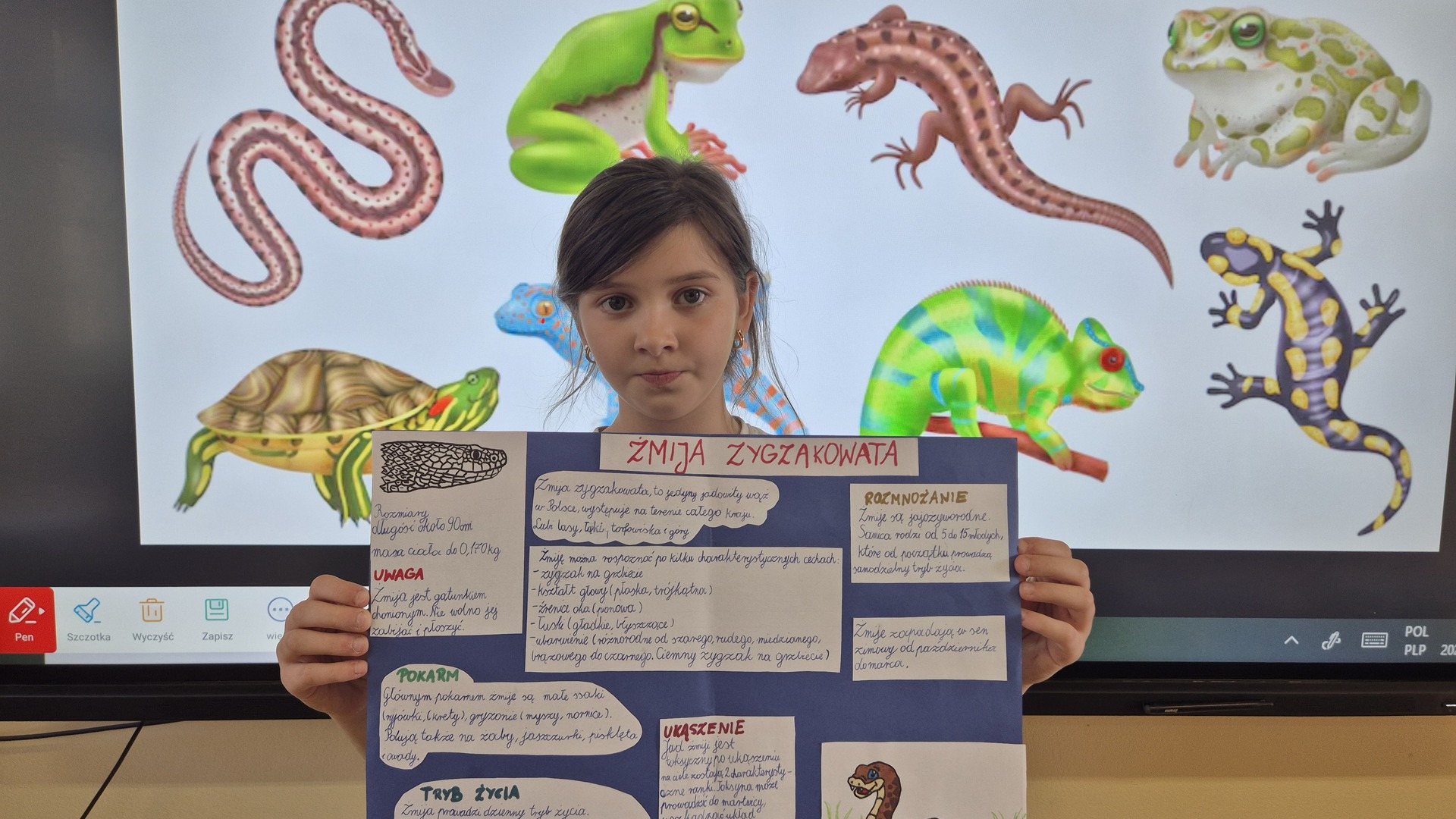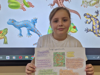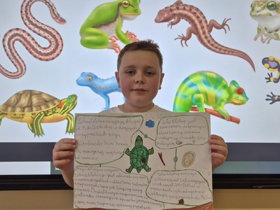 Na lekcji przyrody uczniowie kl.3 rozmawiali o gadach występujących w Polsce. Poznali różne gatunki gadów, ich cechy charakterystyczne oraz środowiska, w których żyją. Następnie każdy przygotował plakat o wybranym gadzie i zaprezentował go całej klasie. Dzięki temu wszyscy mogli dowiedzieć się więcej o tych interesujących zwierzętach . |