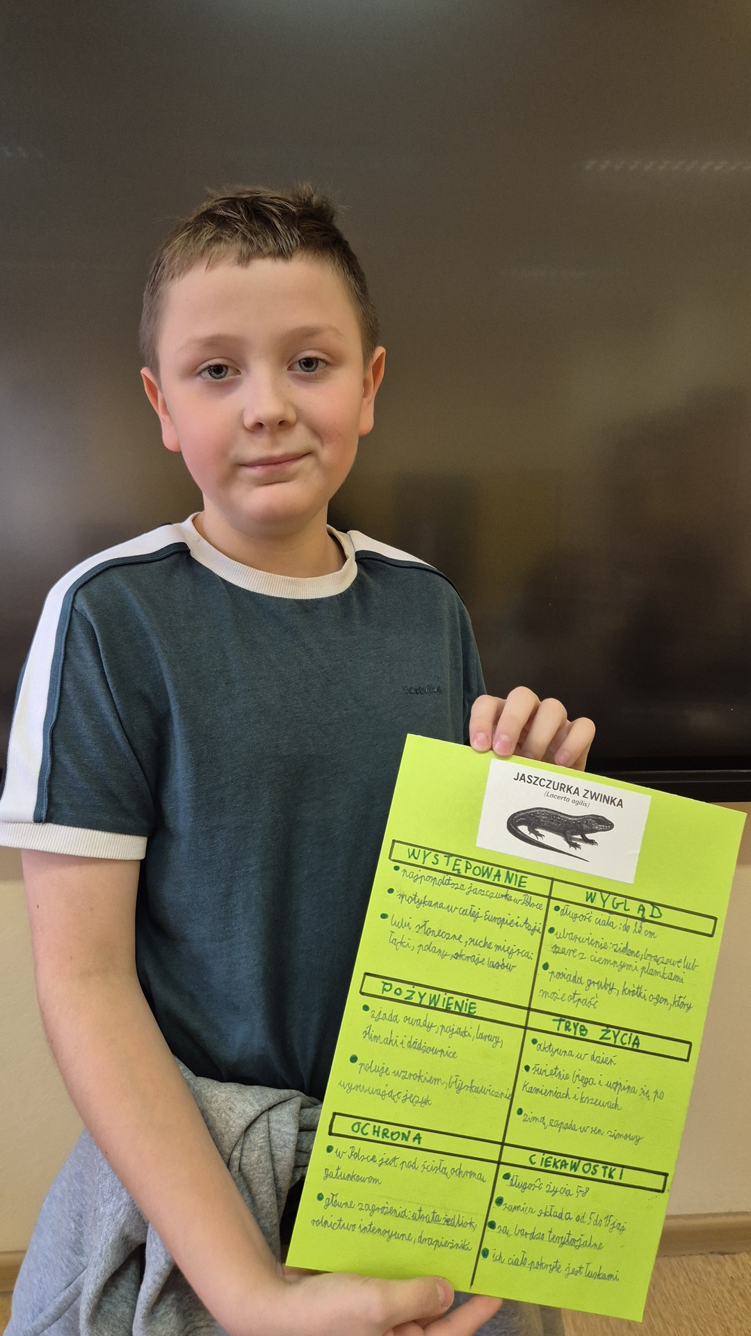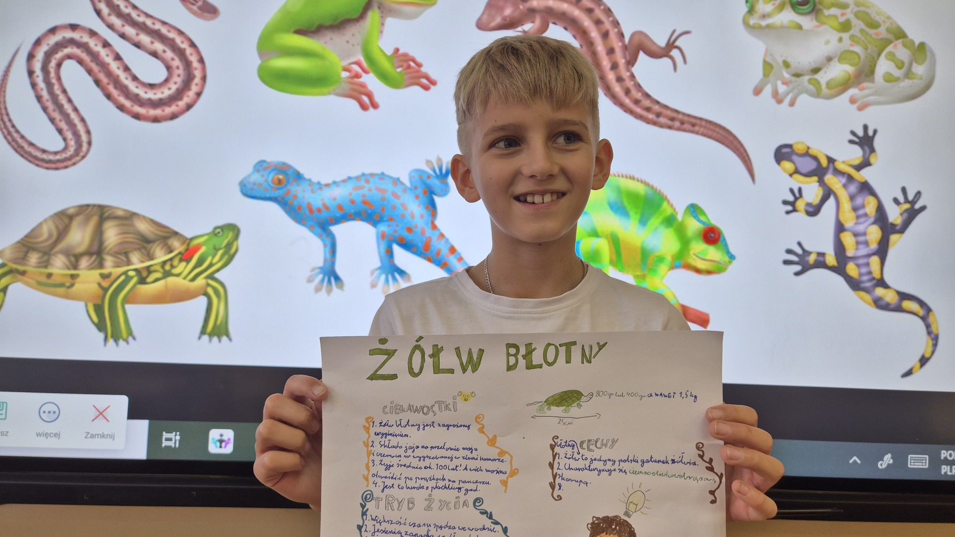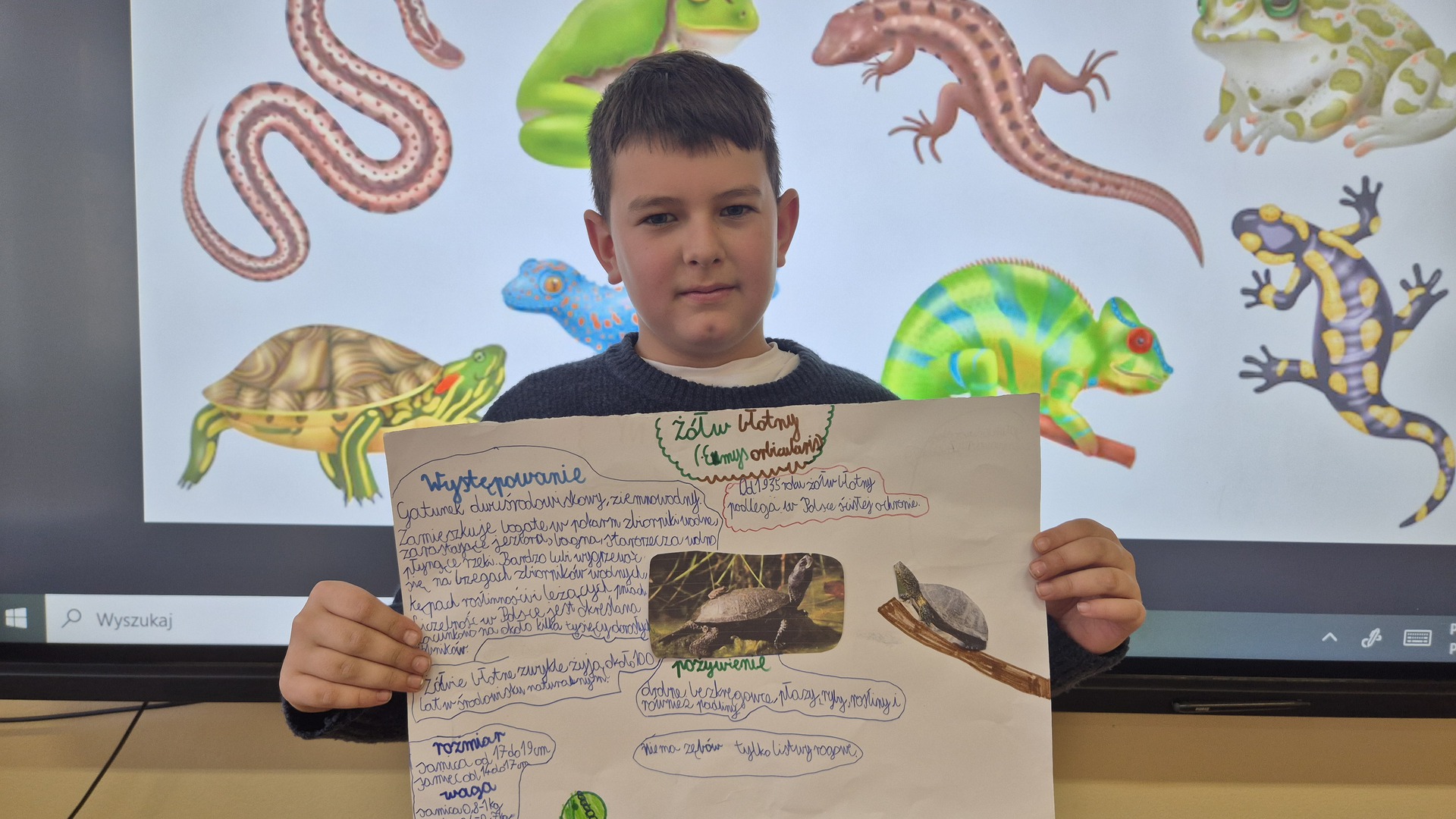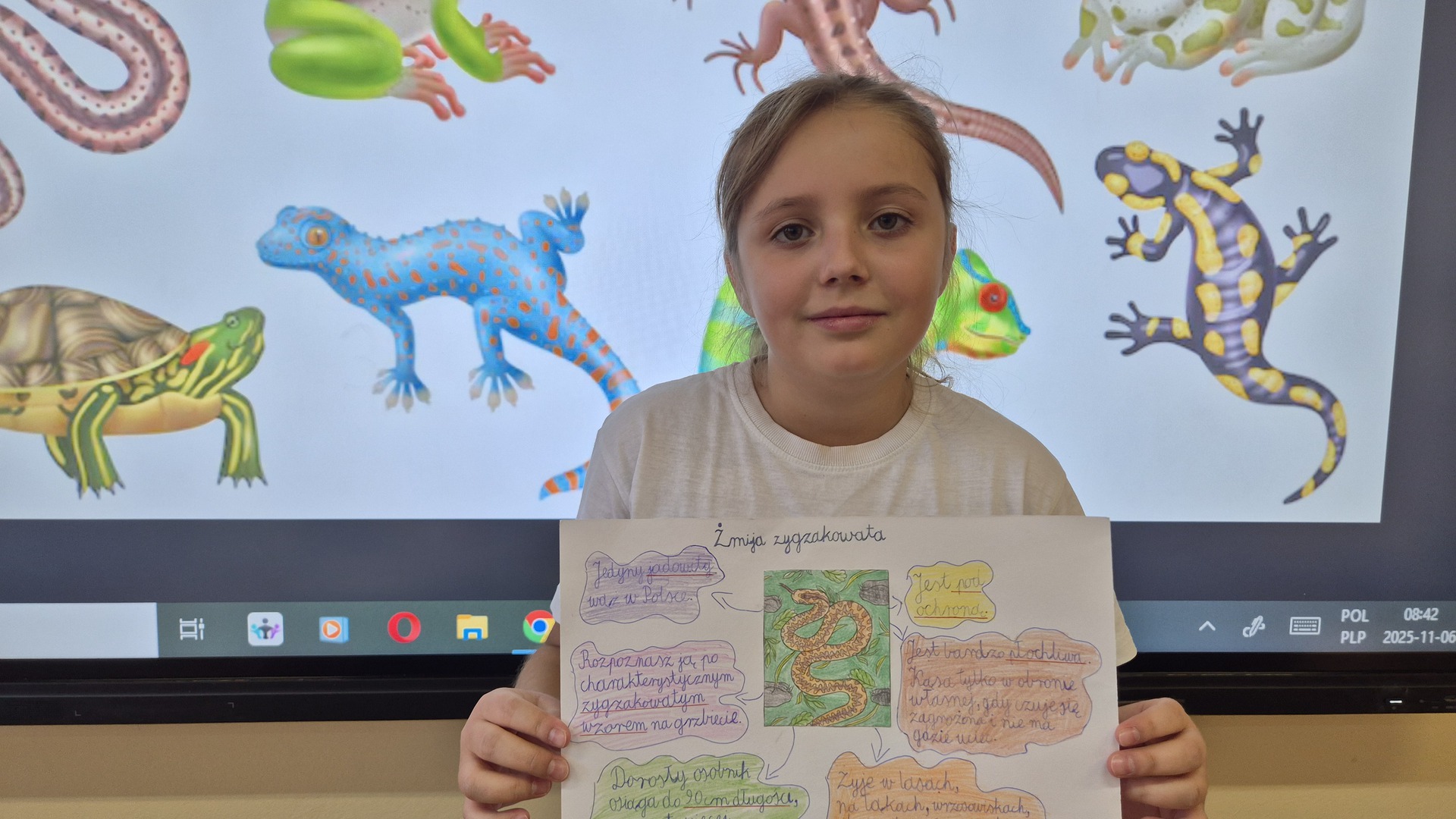 Na lekcji przyrody uczniowie kl.3 rozmawiali o gadach występujących w Polsce. Poznali różne gatunki gadów, ich cechy charakterystyczne oraz środowiska, w których żyją. Następnie każdy przygotował plakat o wybranym gadzie i zaprezentował go całej klasie. Dzięki temu wszyscy mogli dowiedzieć się więcej o tych interesujących zwierzętach . |