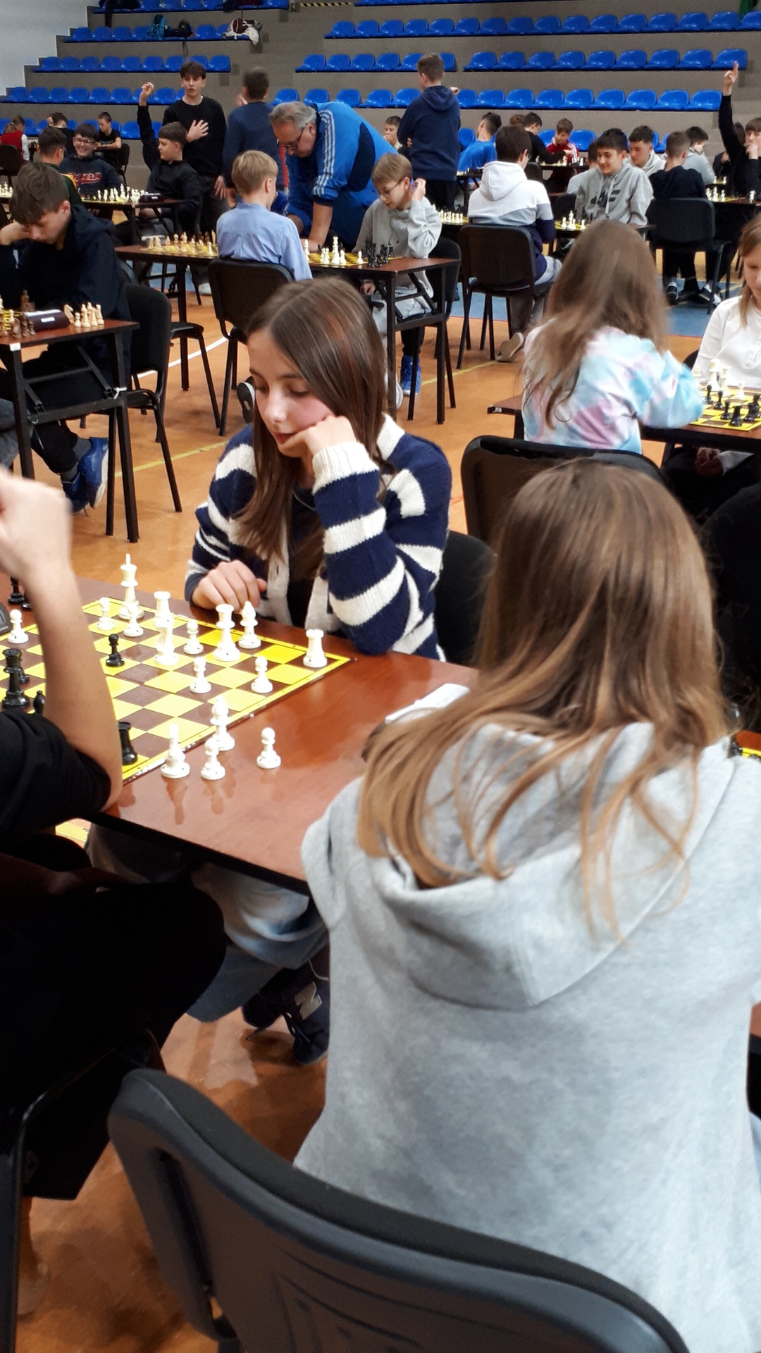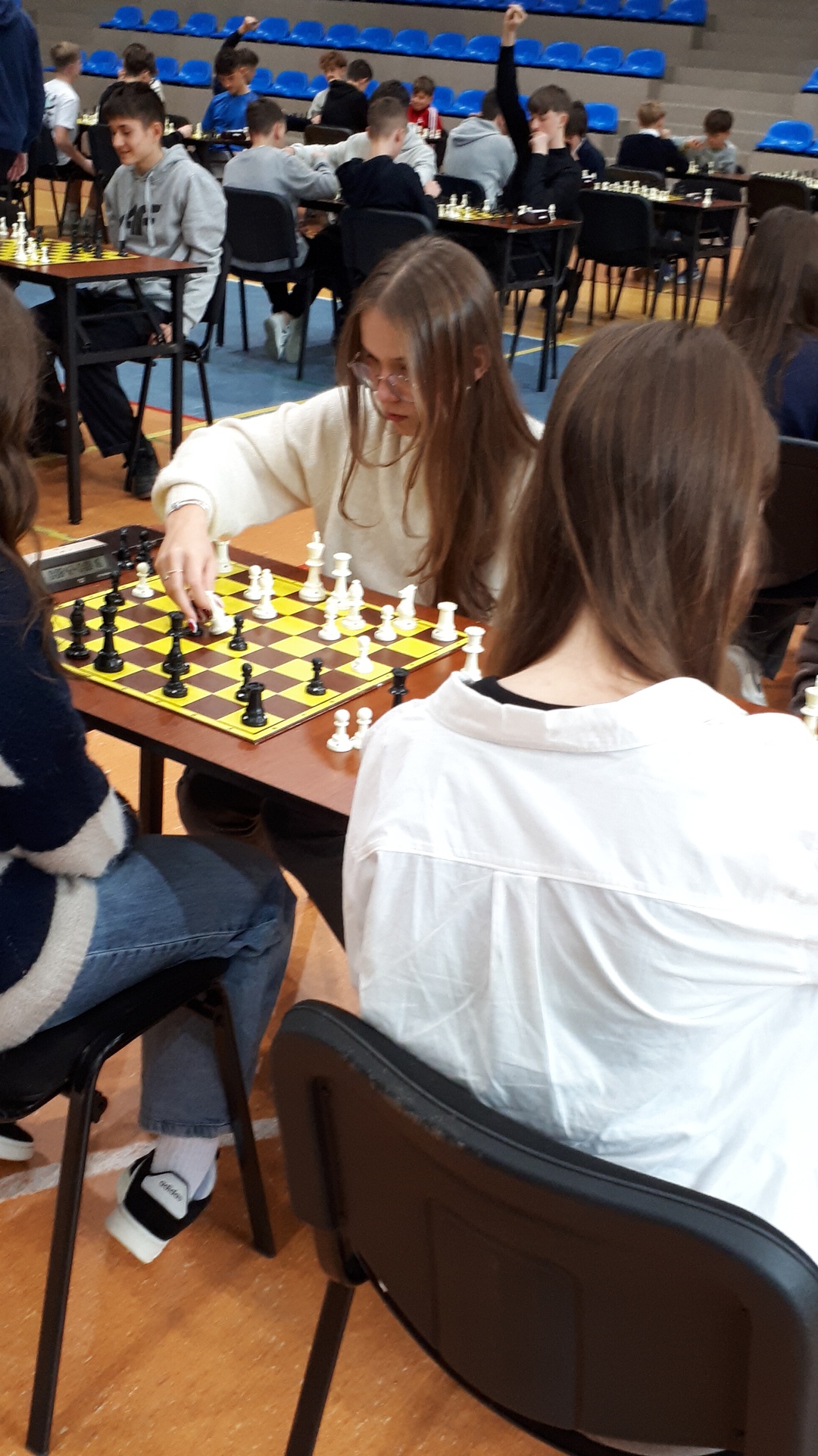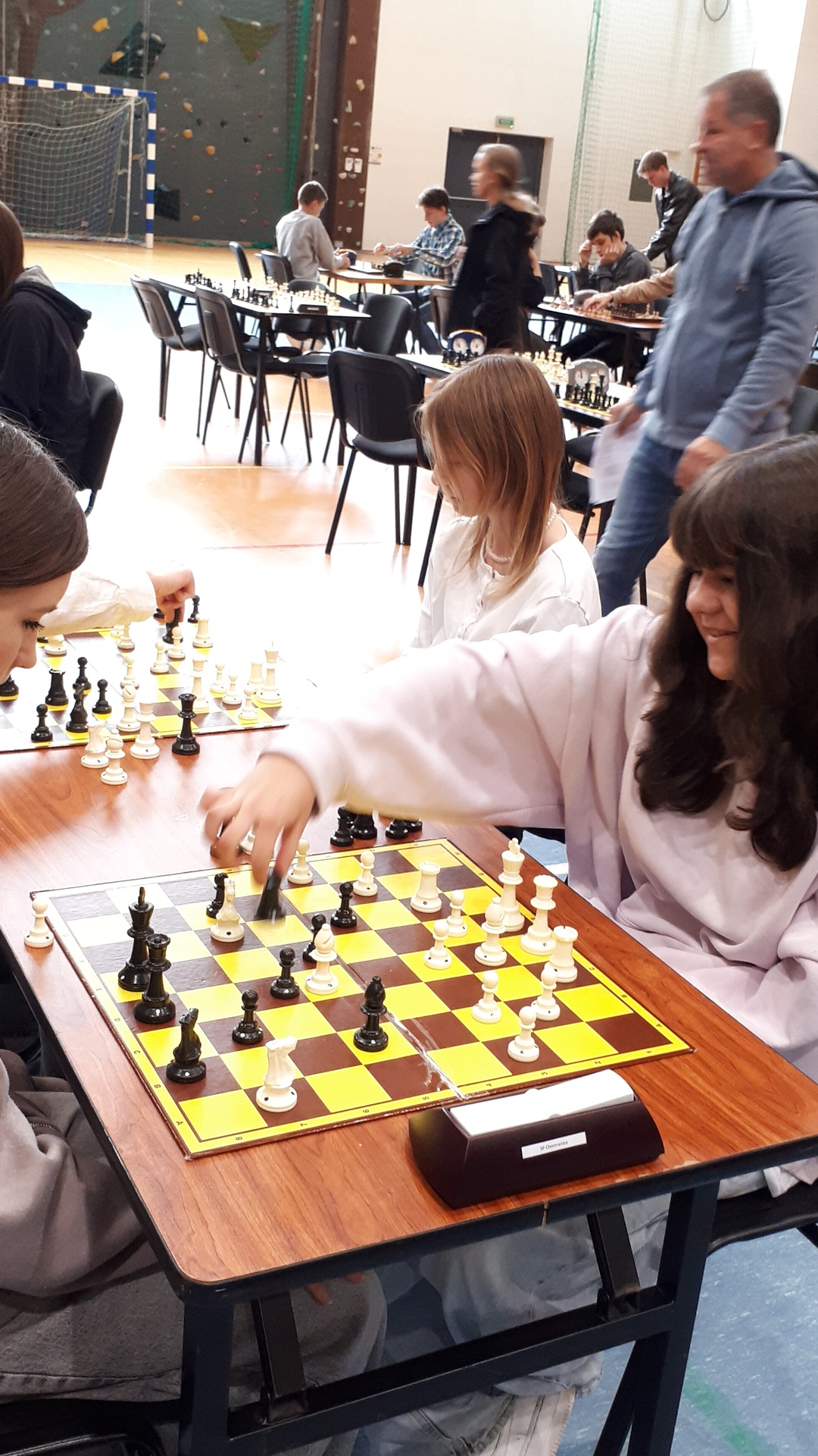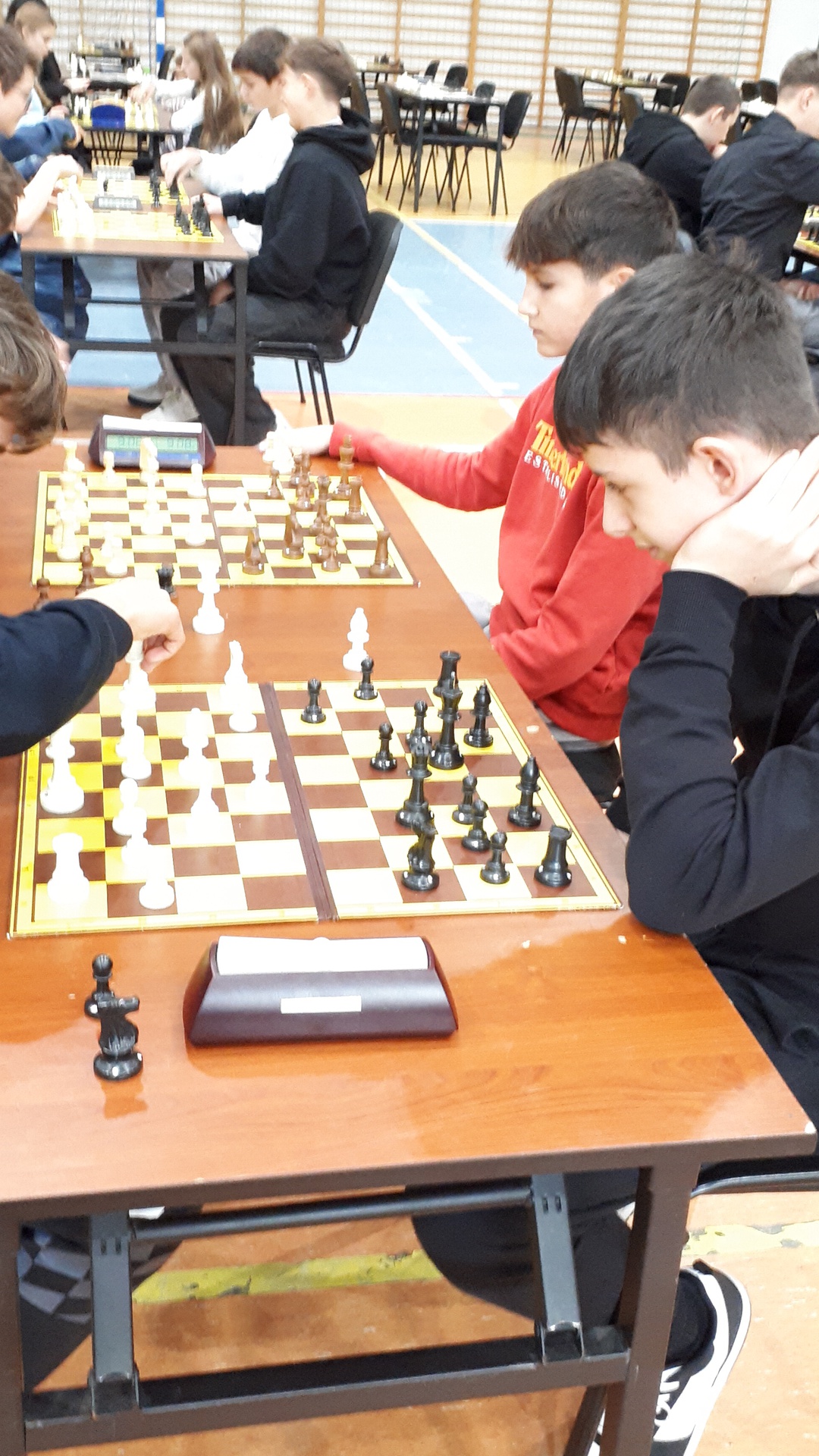 Turniej odbył się 28.października 2025 roku w pięknej hali widowiskowo – sportowej w Łącku, w godzinach od 9-ej do 16-ej. Wymagał od uczestników wysokich umiejętności gry w szachy oraz dobrej kondycji psychicznej i fizycznej. Łącznie uczestniczyło 246 zawodników. Naszą szkołę reprezentowało dziewięcioro uczniów. Każdy zawodnik rozegrał siedem partii. Zdarzały się pojedynki bratobójcze, zarówno u dziewcząt oraz chłopców. Wszyscy nasi uczniowie byli debiutantami w tych igrzyskach. Każdy zawodnik mógł zdobyć maksymalnie siedem punktów. Jak wypadli nasi w swoich kategoriach wiekowych? Kategoria dzieci – chłopcy, klasa 4 - 6.: Pociecha Oskar - klasa 5. – 4 pkt.