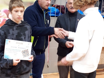 Adam Kumięga zdobył I miejsce i tytuł szachowego mistrza powiatu w swojej kategorii wiekowej. Jest to jego wielki, osobisty sukces. Został udekorowany złotym medalem i otrzymał dyplom mistrza z rąk pana wójta Gminy Łącko. Wszyscy zasłużyli na wielkie brawa za odwagę, kulturę sportową i osobistą oraz godne reprezentowanie naszej szkoły. Widomski Tadeusz |