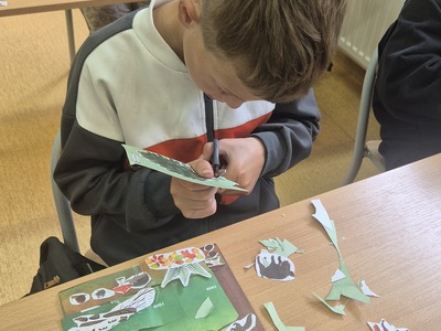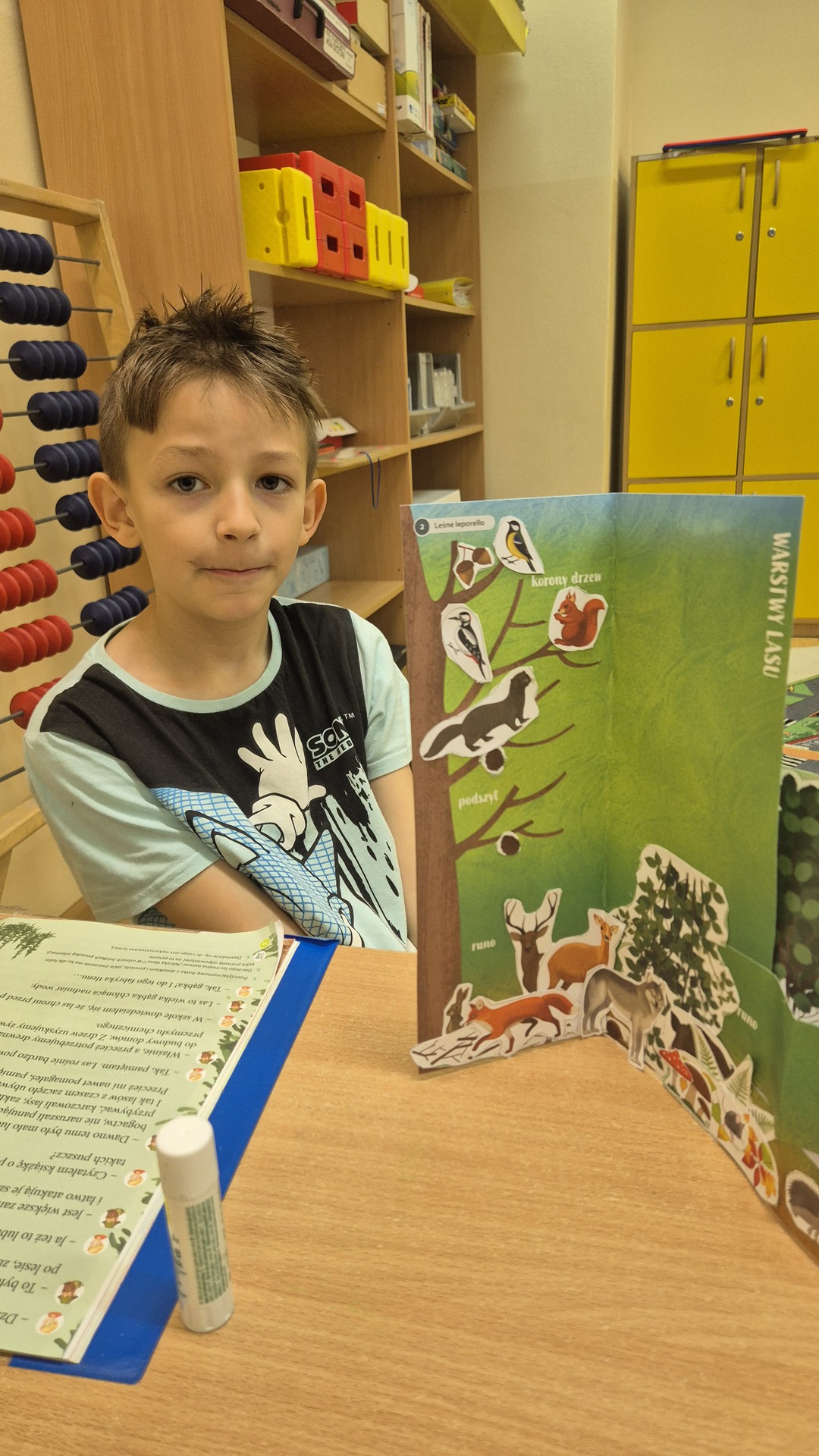 | Uczniowie klasy 3 w październiku wybrali się na spacer do pobliskiego lasu, aby w praktyce utrwalić wiadomości o warstwach lasu. Podczas wycieczki obserwowali rośliny i zwierzęta występujące w poszczególnych warstwach, a następnie wykonali pracę plastyczną przedstawiającą budowę lasu. Dzięki temu lepiej zrozumieli i zapamiętali omawiany temat. |