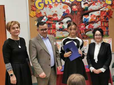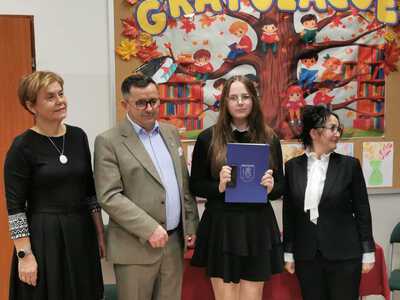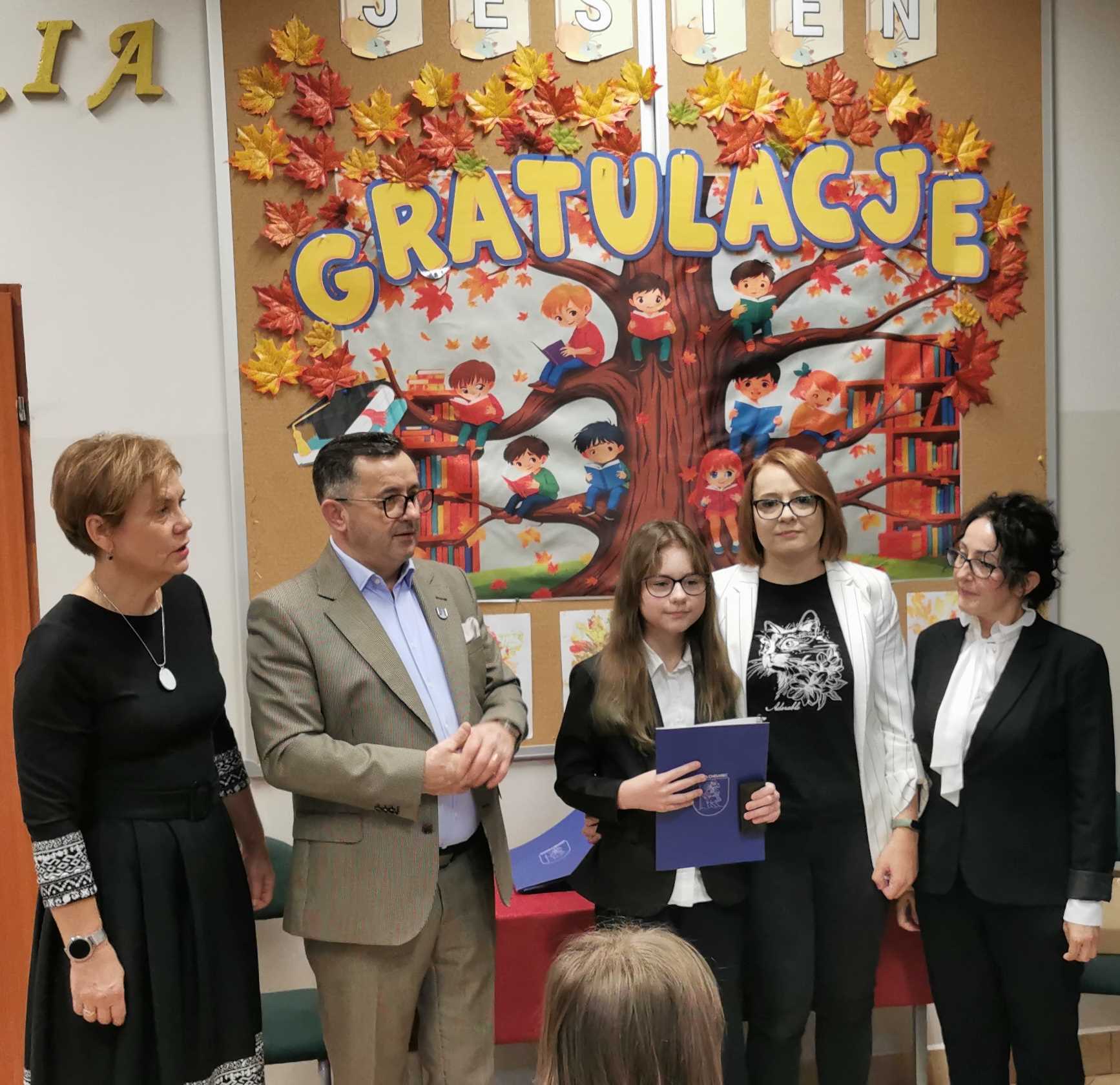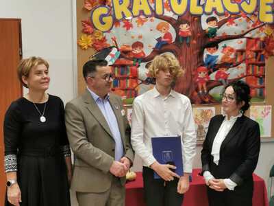 Dnia 26 września 2025r. gościliśmy w naszej szkole Wójta Gminy Chełmiec, pana Stanisława Kuzaka oraz dyrektora GZE, panią Kingę Broszkiewicz-Kuchno. Wręczyli oni dyplomy i nagrody uczniom, którzy w roku szkolnym 2024/2025 uzyskali bardzo dobre wyniki w nauce. Stypendium naukowe otrzymali: Zuzanna Czub Wiktoria Mróz Magdalena Górowska Dorota Poręba Adam Kumięga Zofia Kuc Klaudia Smajdor Gabriela Sowa Maja Froehlich Xavier Ślusarski Milena Legutko Honorata Smajdor Szymon Czub Julia Budnik Patryk Myrlak Wojciech leśniak Aleksandra Radom Kamila Jargut Bartłomiej Smajdor Adam Czub