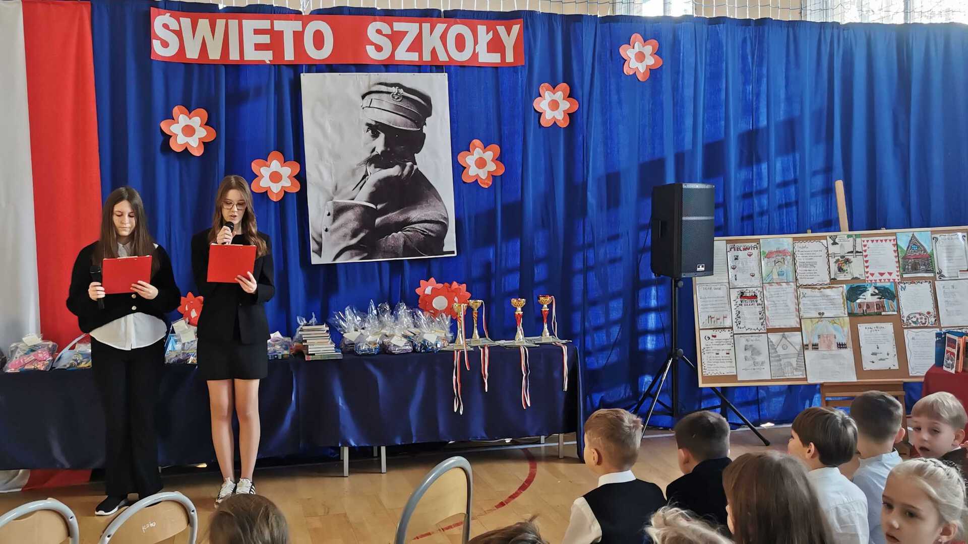 Dnia 4 grudnia 2025 roku społeczność naszej szkoły już po raz 19. uroczyście obchodziła Święto Szkoły. Był to dzień pełen wzruszeń, dumy, radości i wspólnego celebrowania szkolnych wartości. Wśród licznie przybyłych gości znaleźli się m.in.: Uroczystość poprowadziły uczennice: Zuzanna Czub oraz Natalia Ciureja. Spotkanie rozpoczęło się od odśpiewania hymnu szkoły w asyście pocztu sztandarowego. Potem uczniowie wzięli udział w emocjonujących konkursach: turnieju wiedzy o patronie szkoły oraz konkursie pieśni legionowych. Nie zabrakło wzruszeń, pięknych występów oraz gorącego dopingu dla uczestników. Druga część świętowania rozpoczęła się koncertem pieśni patriotycznych w wykonaniu szkolnego chóru, którego występ zachwycił publiczność. Następnie podsumowano wszystkie konkursy, które zorganizowano z okazji Święta Szkoły: turniej wiedzy o patronie, konkurs pieśni legionowych, konkurs kaligraficzny, konkurs literacko-plastyczny oraz multimedialny „TOP 10 – najciekawsze miejsca Marcinkowic”, Turniej Tenisa Stołowego o Puchar Dyrektora Szkoły. W sali gimnastycznej można było podziwiać prace uczniów wyeksponowane na wystawie. Na konkurs literacko-plastyczny „TOP 10 – najciekawsze miejsca Marcinkowic” złożono 19 prac w formie rysunków oraz leporello, natomiast na konkurs multimedialny – 14 prezentacji wykonanych indywidualnie lub w parach. Konkurs kaligraficzny na najładniejsze przepisanie tekstu pieśni legionowej cieszył się największym zainteresowaniem, bo wykonano aż 33 prace. Gratulujemy laureatom konkursów: