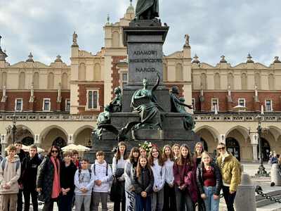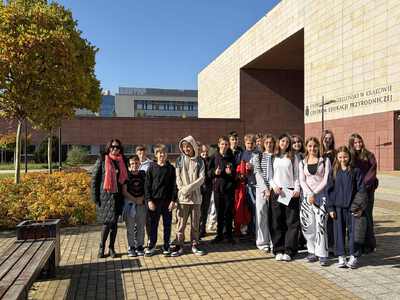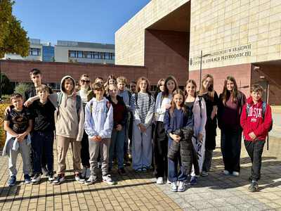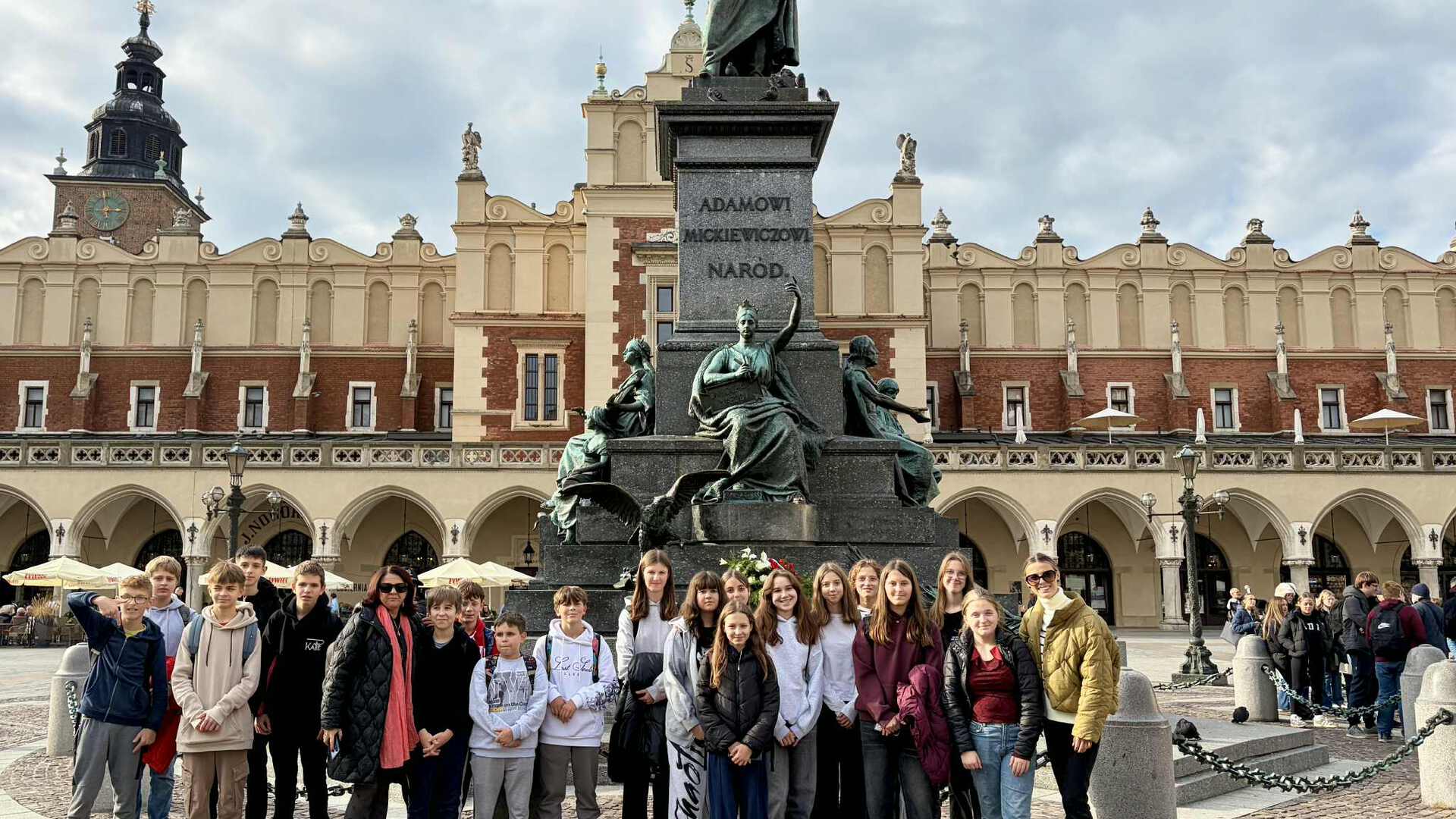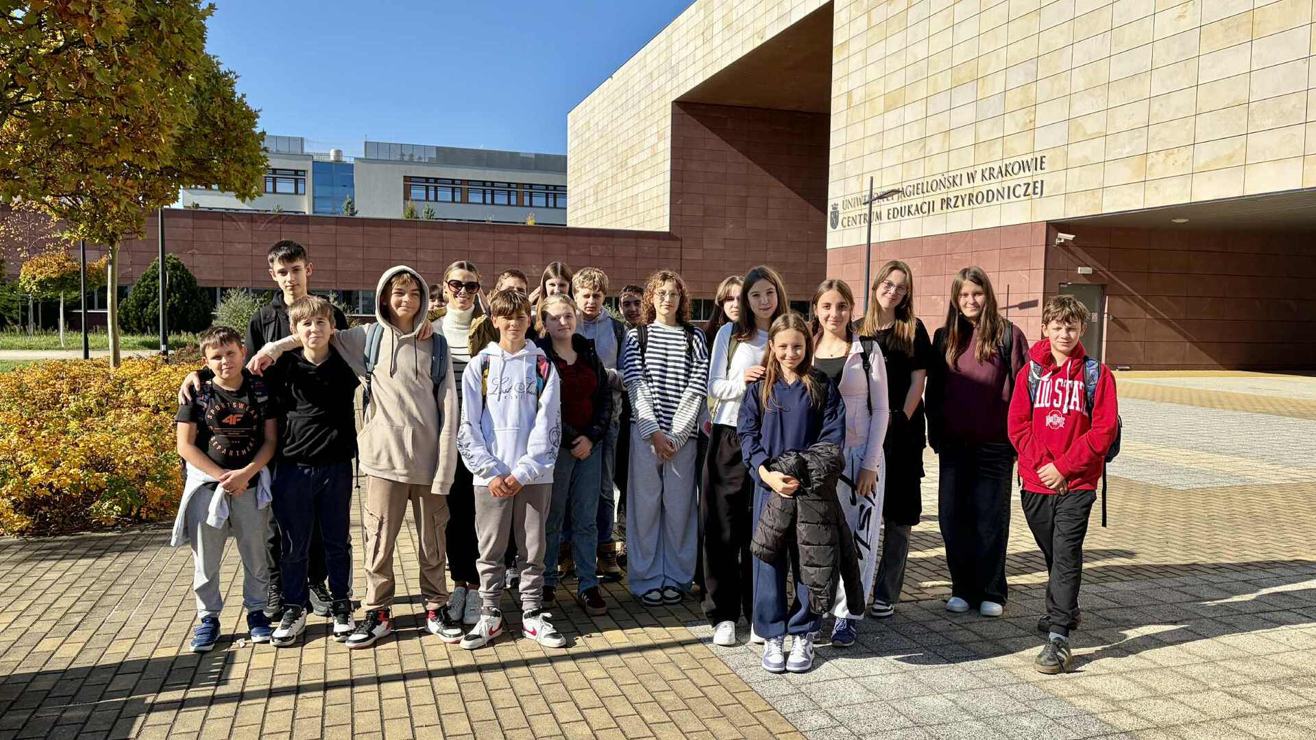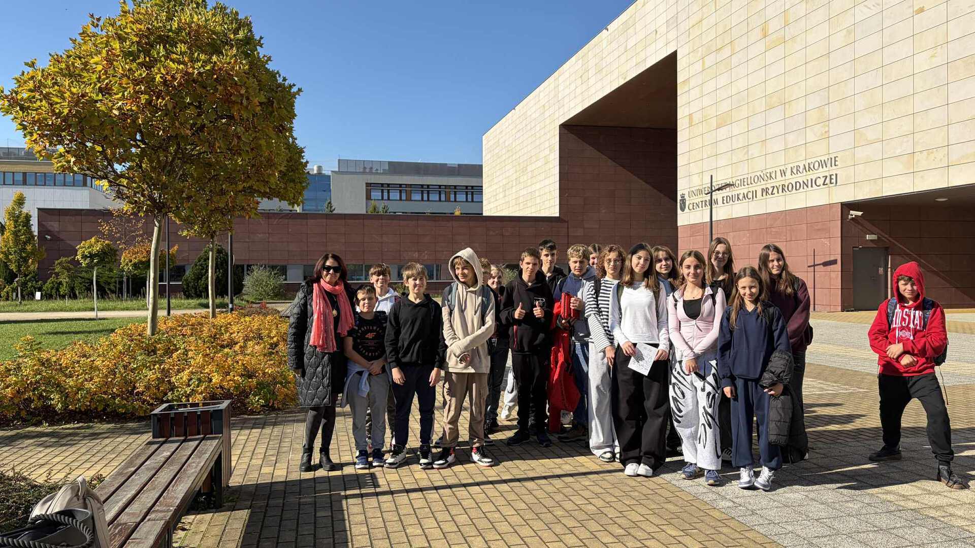 Klasa 7 wybrała się na jednodniową wycieczkę do Krakowa, pełną nauki, odkryć i świetnej zabawy! Pierwszym punktem programu była wizyta w Centrum Edukacji Przyrodniczej Uniwersytetu Jagiellońskiego, gdzie uczniowie uczestniczyli w interesujących warsztatach poświęconych budowie szkieletu człowieka oraz zwiedzaniu wystawy zoologicznej. To była wyjątkowa okazja, by zobaczyć fascynujące eksponaty i poznać tajemnice świata przyrody. Kolejnym etapem był spacer po Ogrodzie Botanicznym UJ, w którym podziwialiśmy niezwykłe gatunki roślin z różnych zakątków świata. Na zakończenie wybraliśmy się na Rynek Główny, gdzie mogliśmy poczuć atmosferę starego Krakowa, zobaczyć Sukiennice i zrobić wspólne zdjęcia. Wycieczka była bardzo udana – dopisała pogoda, humory i energia uczestników. |