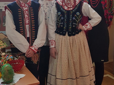 Dnia 26 kwietnia uczniowie naszej szkoły uczestniczyli w Dniu Regionalnym w ZS w Marcinkowicach. Obejrzeli wystawy rękodzieła zaprezentowane przez twórczynie ludowe z naszej okolicy oraz koła gospodyń wiejskich. Samodzielnie wykonywali kwiaty na warsztatach bibułkarskich, oglądali przędzenie włókna na 100-letnim krośnie, szycie fartuszków na maszynie, pieczenie kołaczy. Mogli też popróbować ciasteczek i kołaczy upieczonych w sposób tradycyjny. Zwiedzili również Muzeum Historyczne – salę regionalną oraz salę poświęconą rodzinie Morawskich i Józefowi Piłsudskiemu. Pani Ada Jakubczyk opowiedziała nam ciekawe dzieje ostatnich dziedziców wsi oraz przebieg Bitwy Marcinkowickiej. Nasza szkoła czynnie włączyła się w uroczystości – przygotowaliśmy wystawę prac wykonanych własnoręcznie przez uczniów naszej szkoły. Uczniowie klasy 7 – Agnieszka Szajewska i Konrad Budnik – w strojach regionalnych zaprezentowali piosenkę ludową oraz gadkę wykonaną gwarą lachowską. Udział w Dniu Regionalnym dostarczył nam wielu wrażeń i uświadomił, że to co ludowe jest piękne, musimy o to dbać i przechować w pamięć |