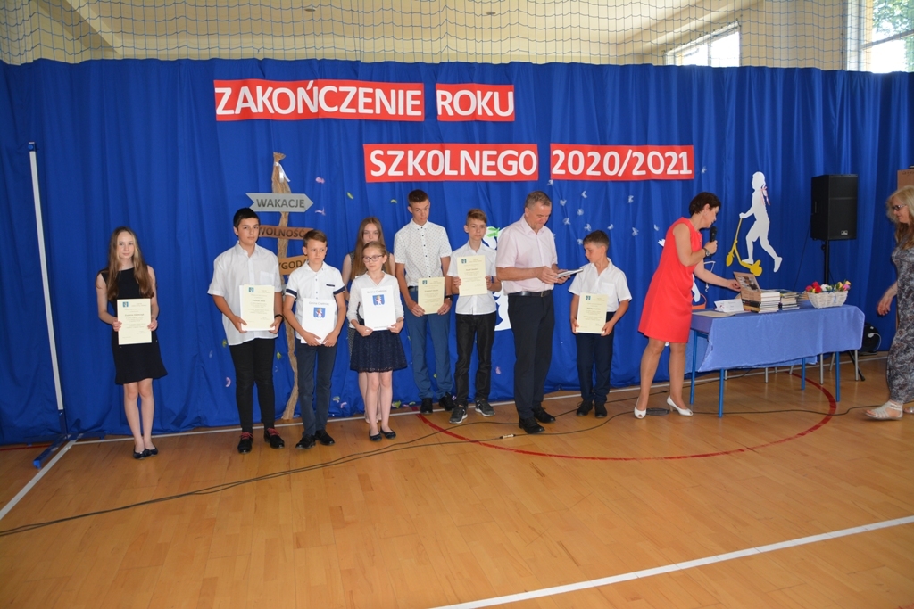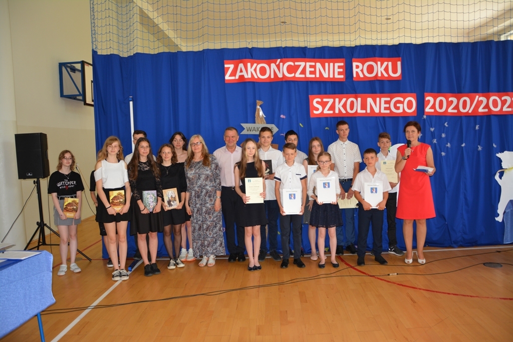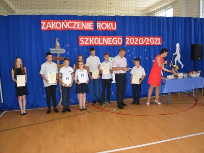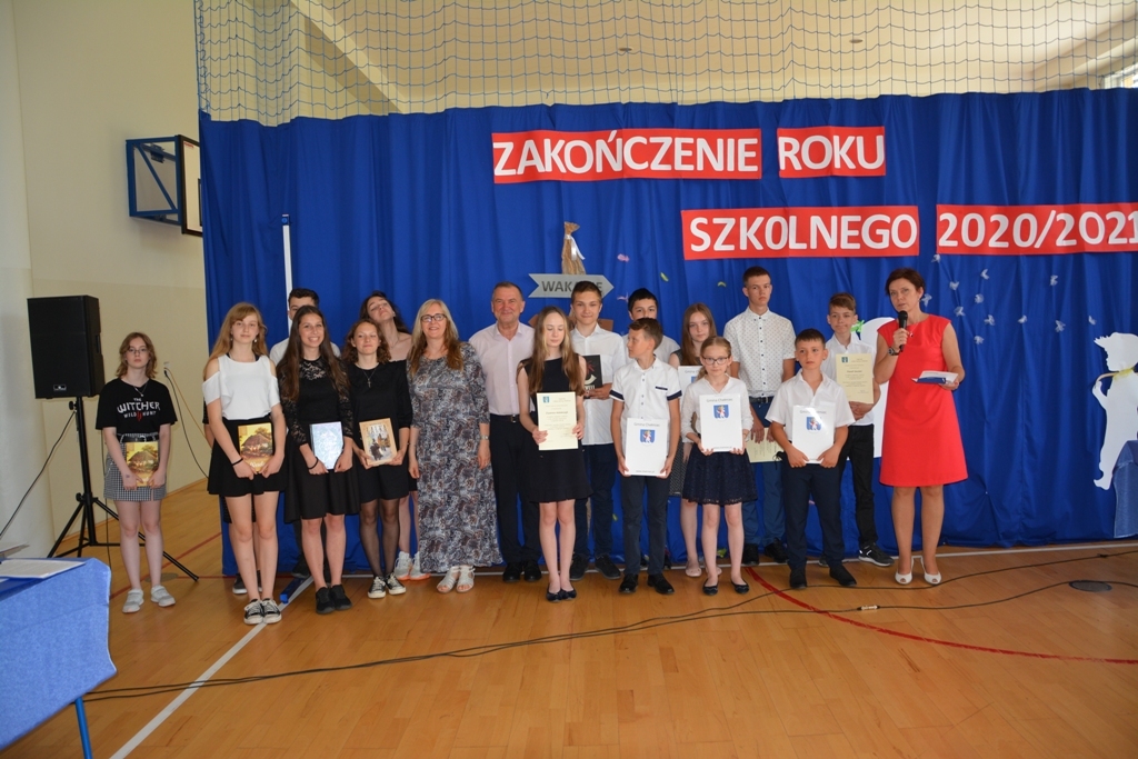 W dniu 23 czerwca 2021 r. w Szkole Podstawowej im. Marszałka Józefa Piłsudskiego w Marcinkowicach odbyło się Gminne Zakończenie Roku Szkolnego 2020/2021. Gospodarzami uroczystości byli pani Elżbieta Samek - Dyrektor szkoły i pan Bernard Stawiarski – Wójt Gminy Chełmiec. Zaszczycili nas swoją obecnością m.in.: p. Radosław Potoczek – dyrektor GZE w Chełmcu, Ks. Tadeusz Celusta – proboszcz parafii w Marcinkowicach, p. Wiesław Szołdrowski - przewodniczący Rady Gminy, p. Andrzej Tyrkiel – przewodniczący Komisji Oświaty oraz radni Gminy Chełmiec: p. Rafał Kasieczka, p. Tadeusz Lis, p. Aleksandra Opalska, p. Władysław Wnęk i p. Sylwester Zaryczny, p. Iwona Sikorska – Dyrektor Zespołu Szkół im. Władysława Orkana w Marcinkowicach oraz p. Ewa Gizicka – Przewodnicząca Rady Rodziców Szkoły Podstawowej w Marcinkowicach. Uczniowie klasy ósmej wraz ze swoją wychowawczynią p. Ewą Pajor-Wojsław przygotowali program artystyczny, w którym żegnali się ze szkołą podstawową. Zebranym towarzyszyły skrajne uczucia: od nostalgii podczas oglądania prezentacji obrazującej zmiany, jakie zachodziły w dzieciach na przestrzeni lat, po wybuchy śmiechu towarzyszące scenkom ze skeczu pt. „Zdalne nauczanie”. Występ absolwentów zakończyły brawurowo wykonane tańce w rytmie belgijki i kowbojki. Następnie uczniowie i uczennice klasy VII pożegnali starszych kolegów i wręczyli im drobne upominki. Kolejnym punktem programu były przemówienia: p. Dyrektor Elżbiety Samek oraz p. Wójta Bernarda Stawiarskiego. Pan Wójt życzył uczniom sukcesów i wspaniałych wakacji, a potem wręczył Nagrody Wójta Gminy Chełmiec oraz specjalne nagrody Wójta ufundowane dla uczniów z najwyższą średnia ocen w szkole. Zakończyliśmy trudny, nietypowy rok szkolny i przed nami zasłużony wypoczynek. |