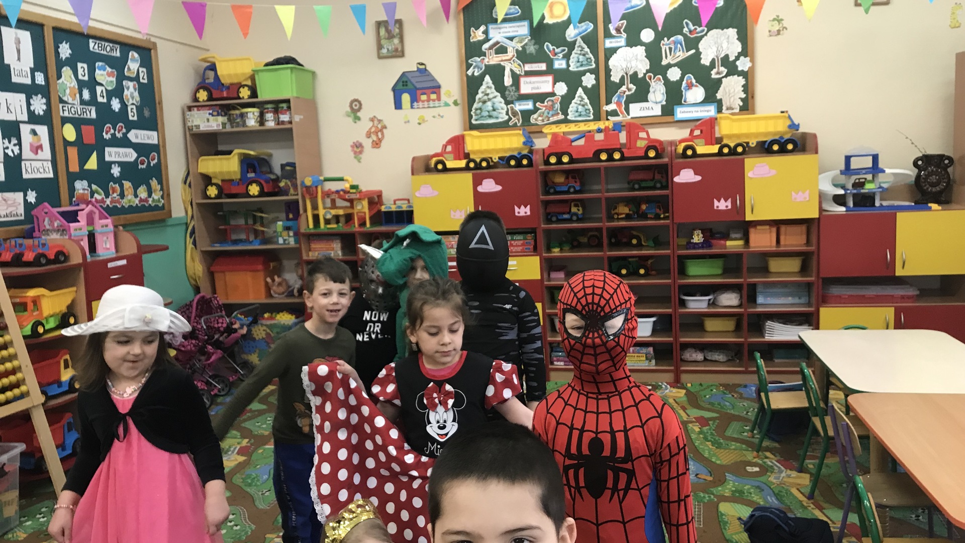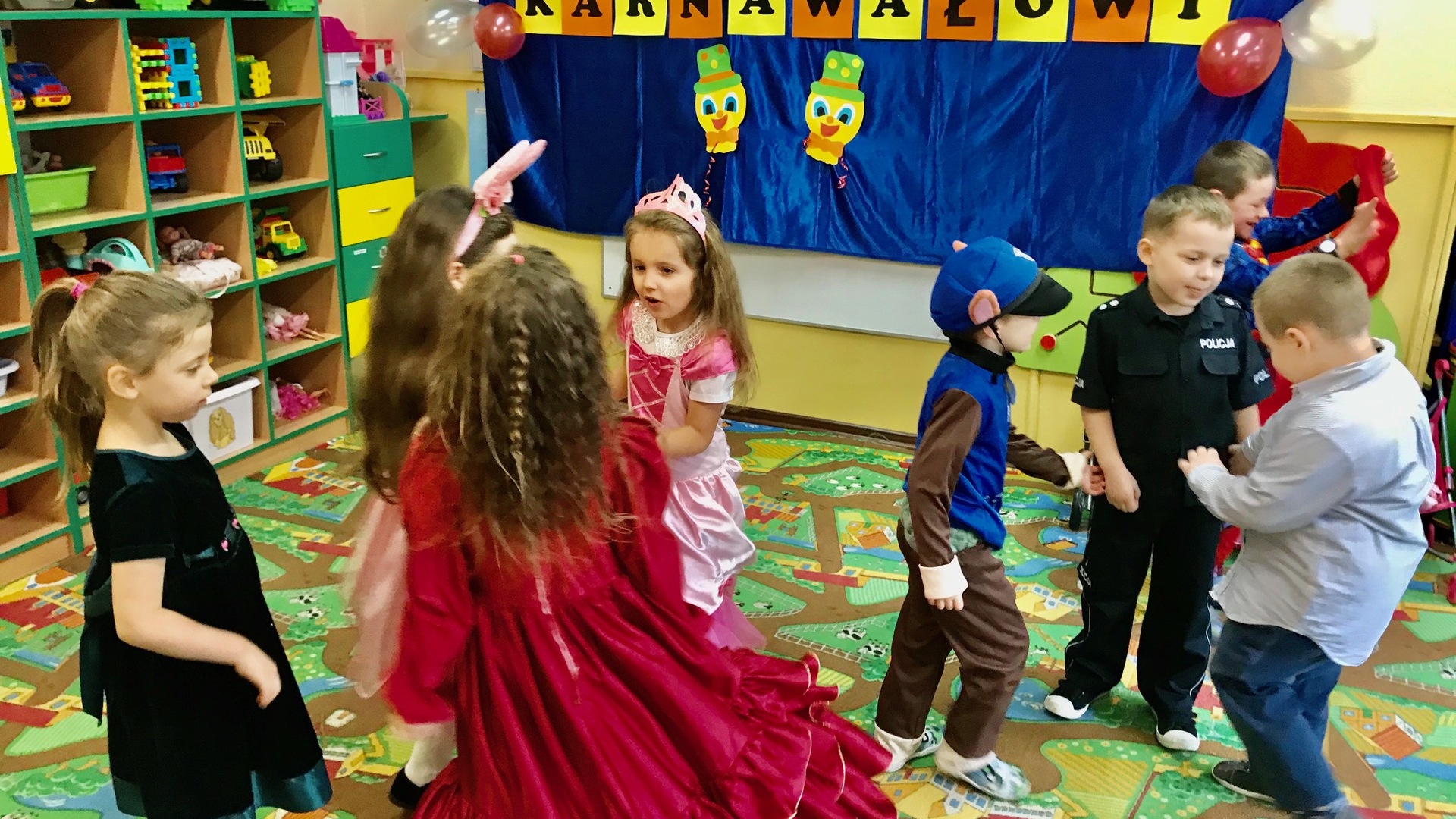 Już Karnawał włożył maskę, Drzwi otworzył z hukiem, z trzaskiem! Wpadł jak wicher do pokoju, W czym? W karnawałowym stroju- Cześć. Przybiegłem w odwiedzimy, Mam wstążeczki i cekiny, Nut wesołych dwie kieszenie I do tańca ZAPROSZENIE.