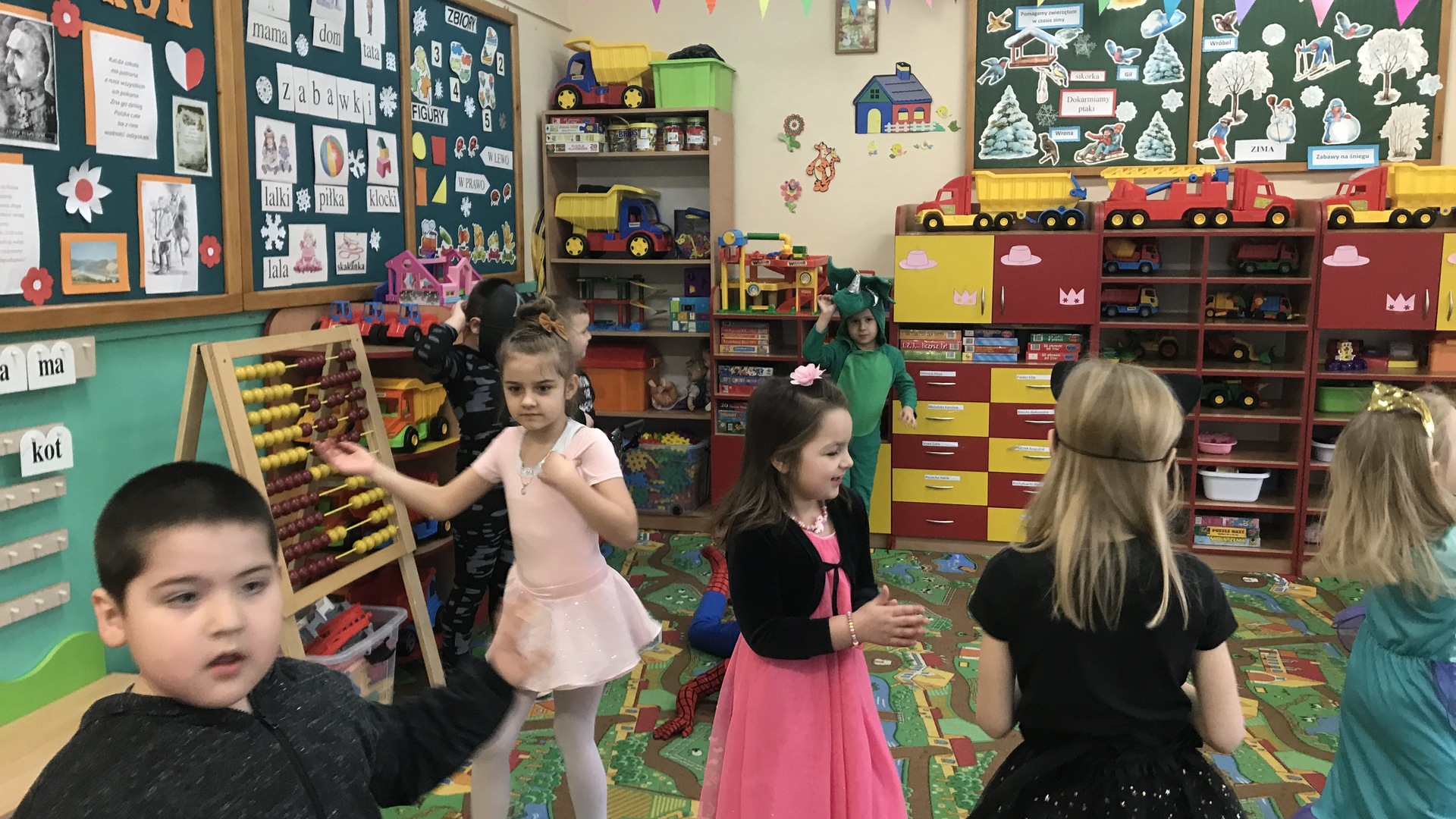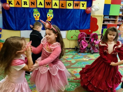 Karnawał to miła tradycja przepełniona muzyką i zabawą. 23 lutego w oddziale przedszkolnym odbył się taki bal. Tego dnia już od rana pojawiały się kolorowe postacie, które przystąpiły do przygotowania balonowych ozdób do udekorowania przyszłej sali balowej. Nowy wystrój sali wprowadził dzieci w radosny nastrój oraz zachęcił wszystkich do wesołej zabawy. Przedszkolaki świetnie bawiły się w rytm muzyki porywającej do tańca oraz brały udział w najróżniejszych zabawach i konkursach z nagrodami. Serdecznie dziękujemy rodzicom za przygotowanie pysznego poczęstunku. |