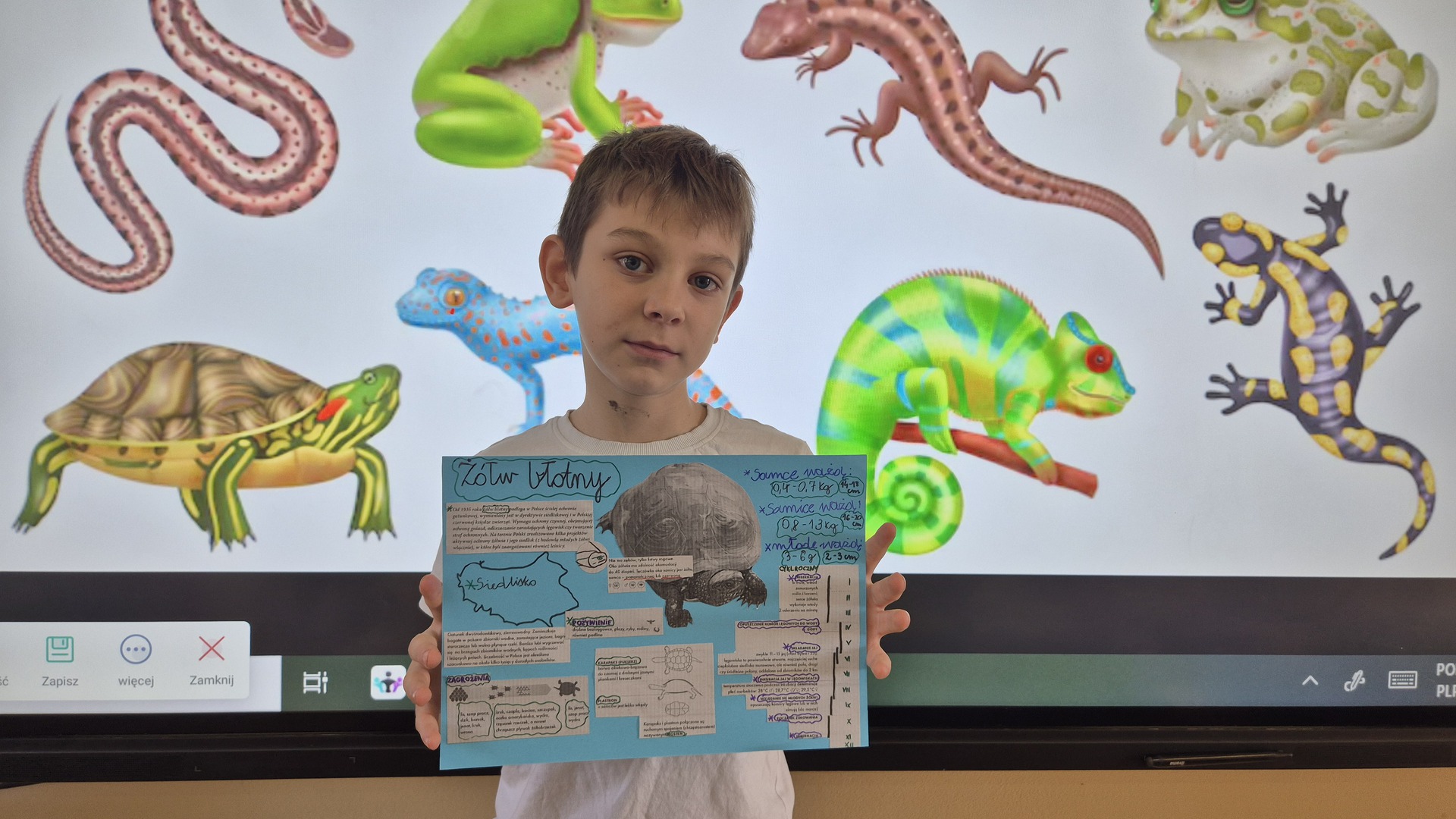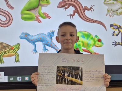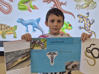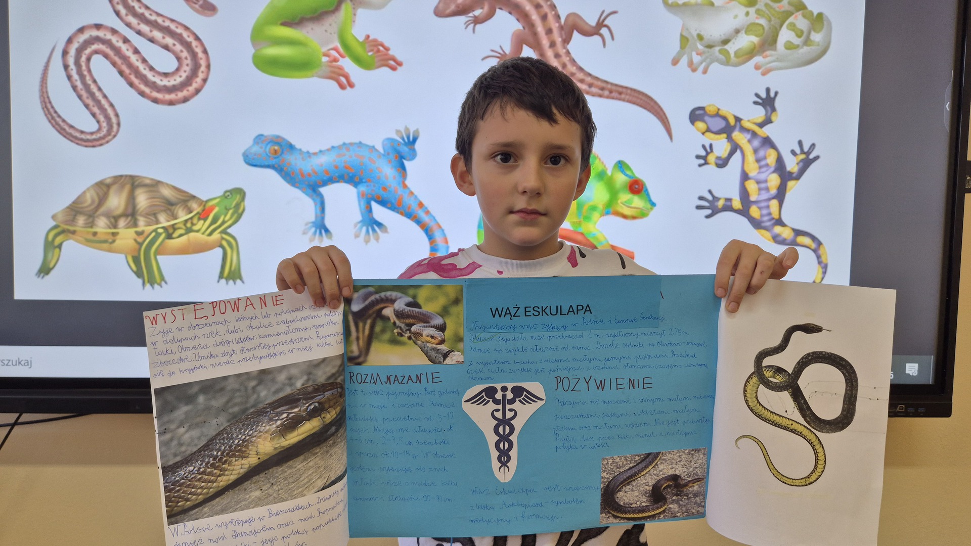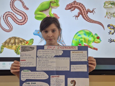 Na lekcji przyrody uczniowie kl.3 rozmawiali o gadach występujących w Polsce. Poznali różne gatunki gadów, ich cechy charakterystyczne oraz środowiska, w których żyją. Następnie każdy przygotował plakat o wybranym gadzie i zaprezentował go całej klasie. Dzięki temu wszyscy mogli dowiedzieć się więcej o tych interesujących zwierzętach . |