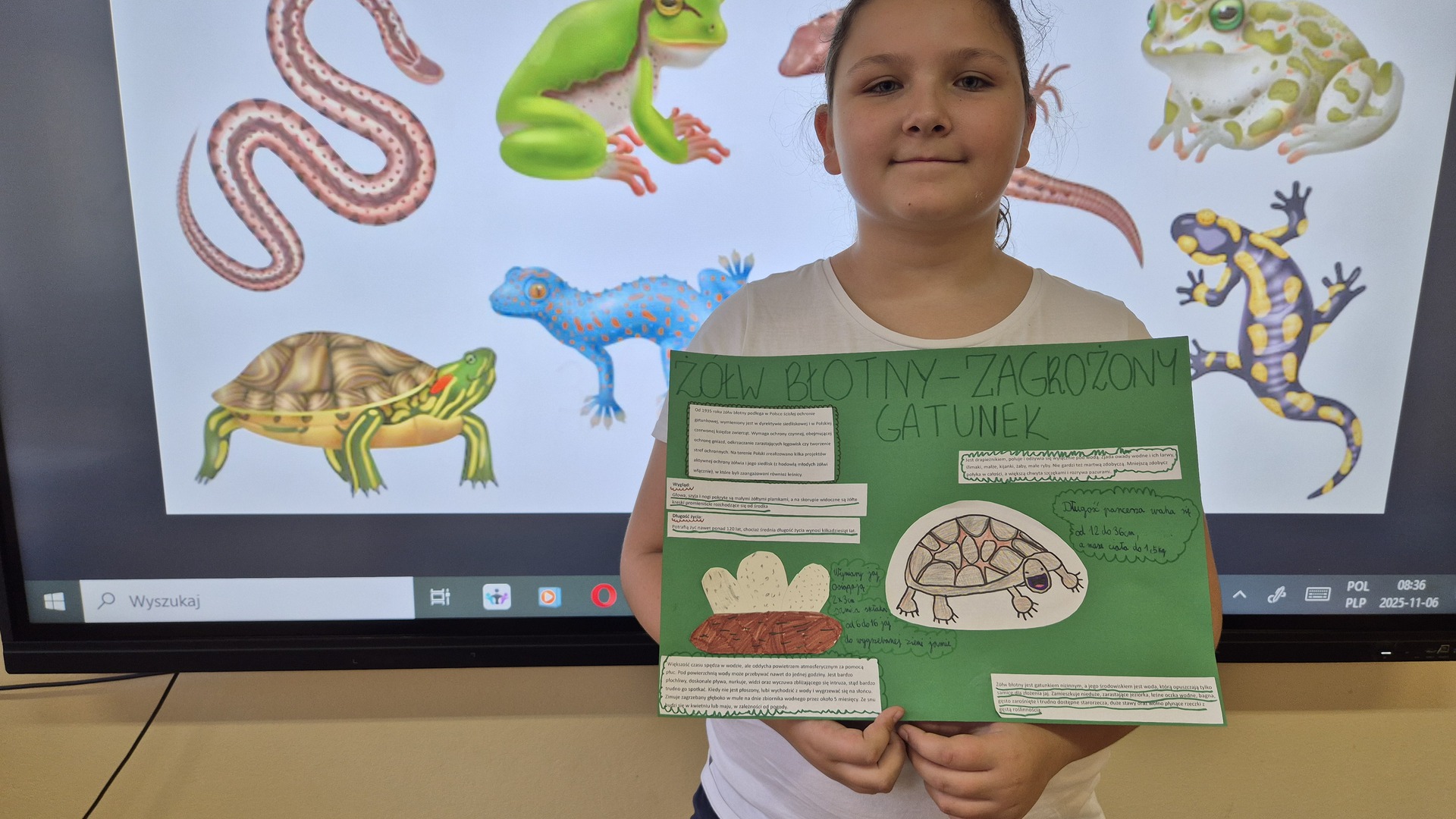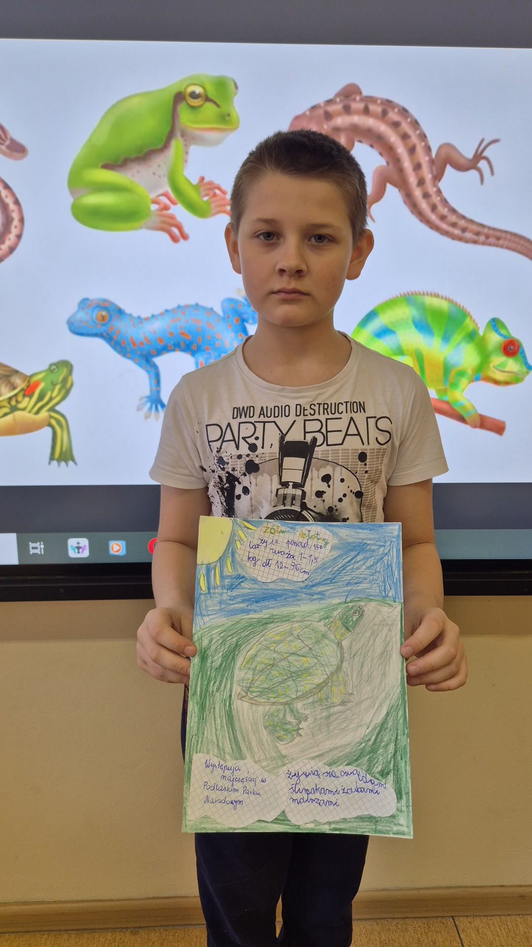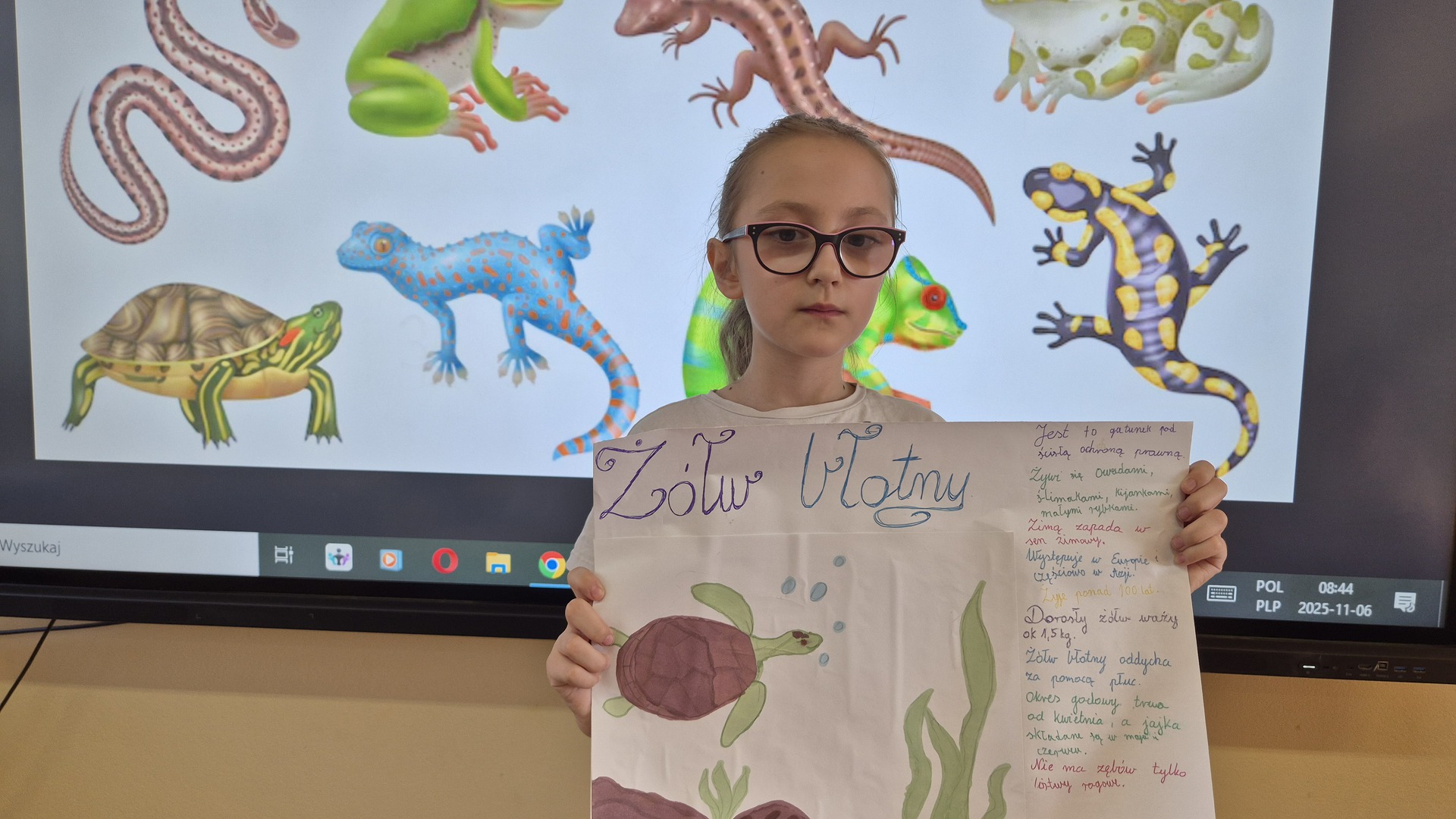 Na lekcji przyrody uczniowie kl.3 rozmawiali o gadach występujących w Polsce. Poznali różne gatunki gadów, ich cechy charakterystyczne oraz środowiska, w których żyją. Następnie każdy przygotował plakat o wybranym gadzie i zaprezentował go całej klasie. Dzięki temu wszyscy mogli dowiedzieć się więcej o tych interesujących zwierzętach . |