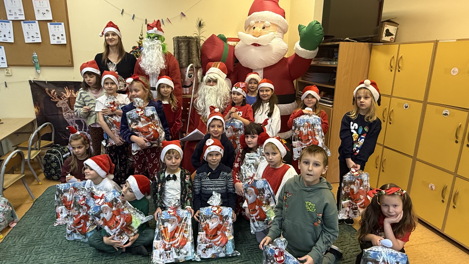 Dziś uczniów klas 1 i 2 odwiedził wyjątkowy gość… a nawet dwóch! 😄Na początku do sali wkroczył Grinch, który – jak to Grinch – próbował ukraść prezenty 🎁💚. Na szczęście szybko przekonał się, że świąteczna atmosfera i radość dzieci są silniejsze niż jego psoty!
