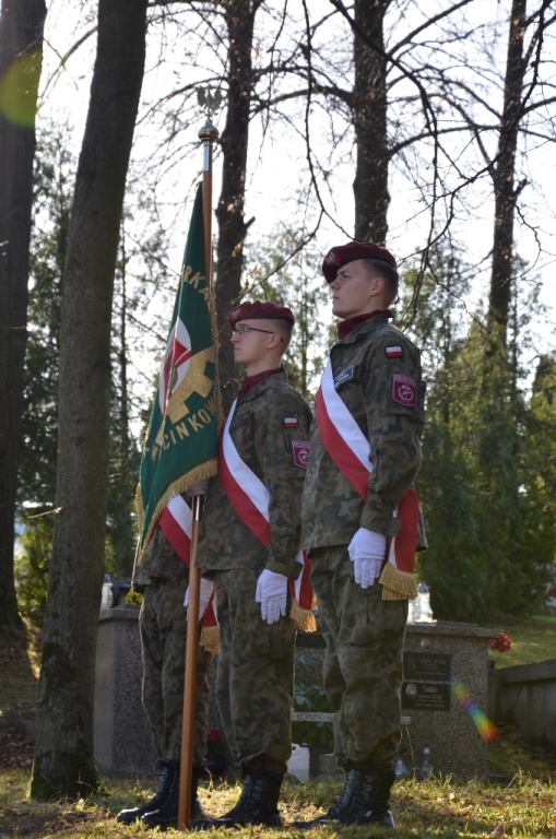 | Jedenastego listopada 2021 r. społeczność Szkoły Podstawowej w Marcinkowicach, zgodnie z tradycją, włączyła się w obchody Narodowego Święta Niepodległości. O godz. 10.00 w kościele parafialnym odbyła się msza św. za Ojczyznę, w której wzięła udział reprezentacja szkoły: poczet sztandarowy, nauczyciele, dyrektor szkoły pani Elżbieta Samek oraz uczniowie z rodzinami. Pieczę nad pocztem sztandarowym sprawowali nauczyciele: pani Marzena Leśniak i pan Robert Cempa. Mszę św. poprzedził koncert Orkiestry Parafialnej. Jedną z solistów była nauczycielka naszej szkoły pani Celina Pacholarz. Druga część uroczystości miała miejsce na Cmentarzu Legionistów w Marcinkowicach. Ksiądz Sebastian Musiał odmówił modlitwę za poległych. Dyrektorzy szkół: pani Iwona Sikorska i pani Elżbieta Samek wraz z księdzem Sebastianem Musiałem w imieniu szkół: Szkoły Podstawowej im. Marszałka Józefa Piłsudskiego, Zespołu Szkół im. Władysława Orkana w Marcinkowicach i Szkoły Podstawowej im. Stanisława i Jana Potoczka w Rdziostowie złożyli okolicznościowy wieniec i zapalili znicze. Przy Grobach Legionistów stały poczty sztandarowe i wartę trzymali umundurowani uczniowie ZS w Marcinkowicach.