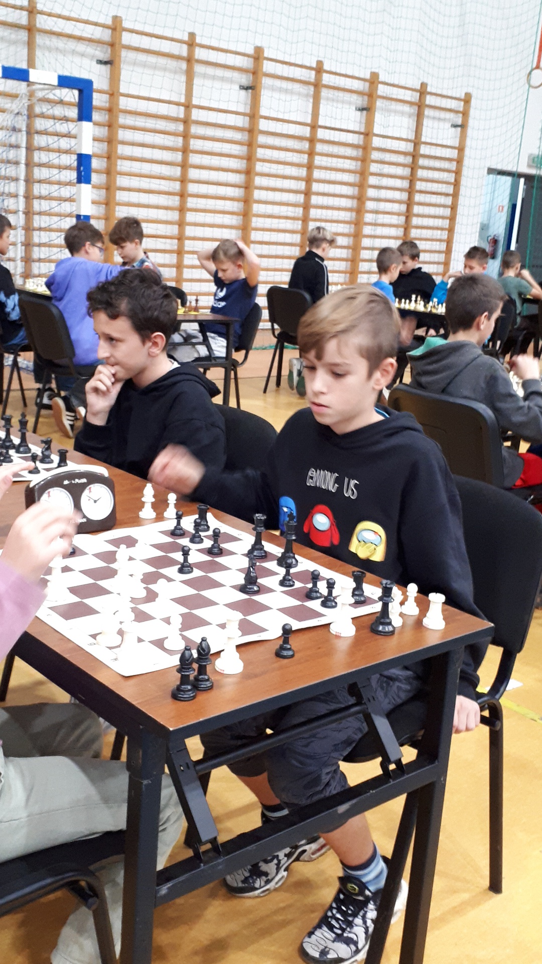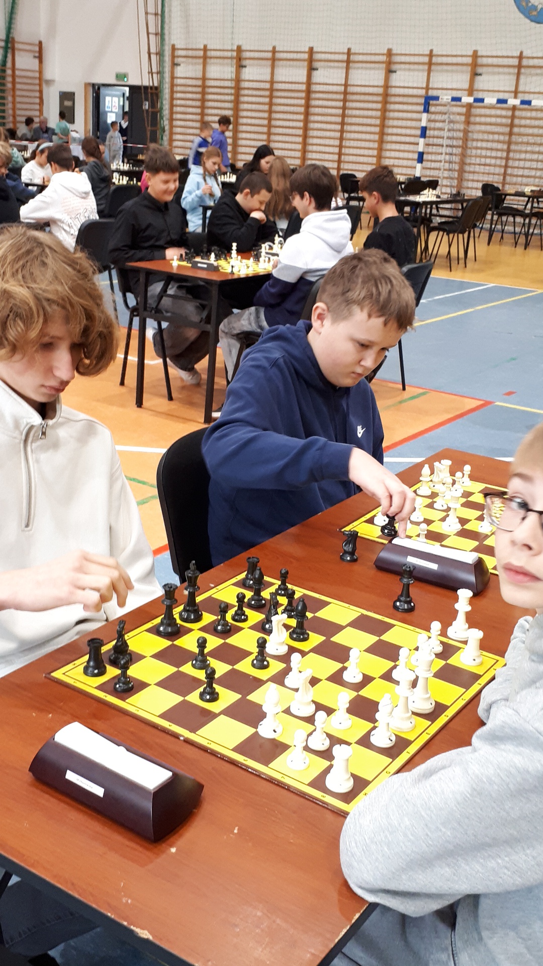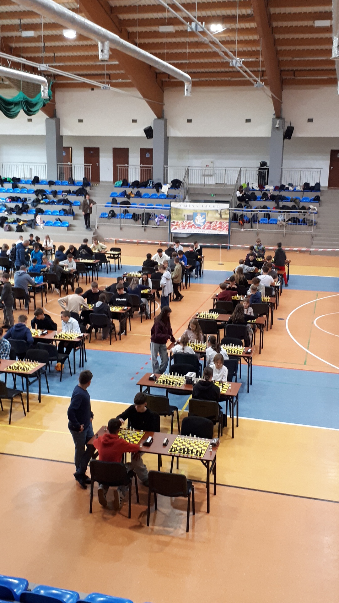Turniej odbył się 28.października 2025 roku w pięknej hali widowiskowo – sportowej w Łącku, w godzinach od 9-ej do 16-ej. Wymagał od uczestników wysokich umiejętności gry w szachy oraz dobrej kondycji psychicznej i fizycznej. Łącznie uczestniczyło 246 zawodników. Naszą szkołę reprezentowało dziewięcioro uczniów. Każdy zawodnik rozegrał siedem partii. Zdarzały się pojedynki bratobójcze, zarówno u dziewcząt oraz chłopców. Wszyscy nasi uczniowie byli debiutantami w tych igrzyskach. Każdy zawodnik mógł zdobyć maksymalnie siedem punktów. Jak wypadli nasi w swoich kategoriach wiekowych? Kategoria dzieci – chłopcy, klasa 4 - 6.: Pociecha Oskar - klasa 5. – 4 pkt.