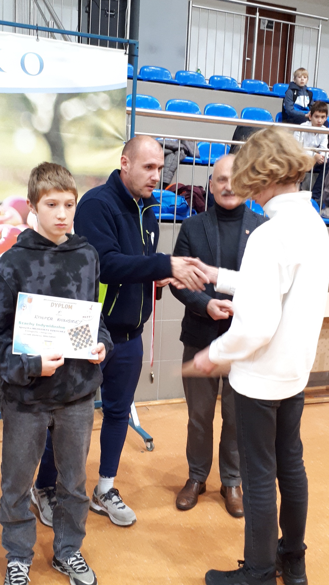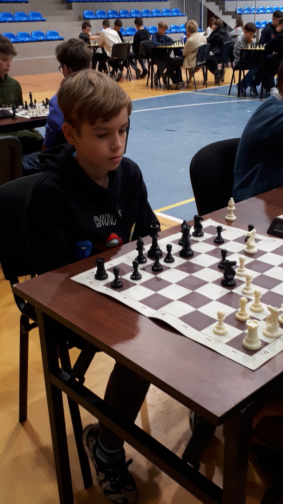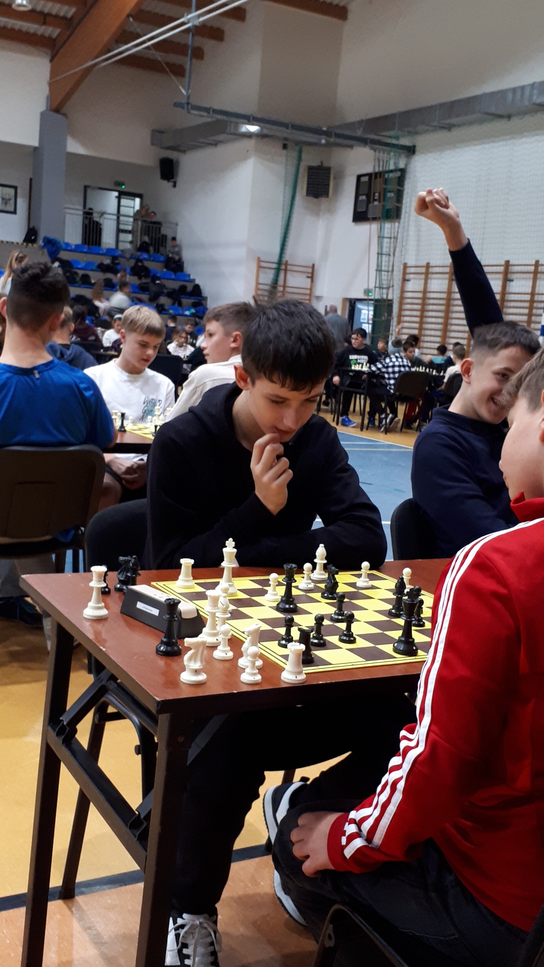 Turniej odbył się 28.października 2025 roku w pięknej hali widowiskowo – sportowej w Łącku, w godzinach od 9-ej do 16-ej. Wymagał od uczestników wysokich umiejętności gry w szachy oraz dobrej kondycji psychicznej i fizycznej. Łącznie uczestniczyło 246 zawodników. Naszą szkołę reprezentowało dziewięcioro uczniów. Każdy zawodnik rozegrał siedem partii. Zdarzały się pojedynki bratobójcze, zarówno u dziewcząt oraz chłopców. Wszyscy nasi uczniowie byli debiutantami w tych igrzyskach. Każdy zawodnik mógł zdobyć maksymalnie siedem punktów. Jak wypadli nasi w swoich kategoriach wiekowych? Kategoria dzieci – chłopcy, klasa 4 - 6.: Pociecha Oskar - klasa 5. – 4 pkt.