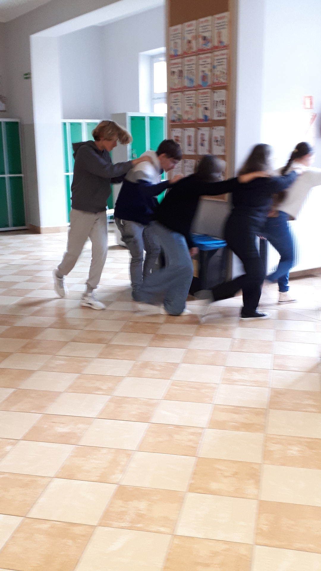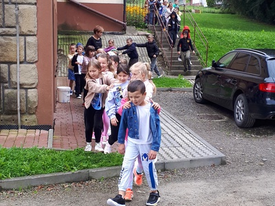 Kl. 1. 21 Kl. 2. 19. Kl. 3. 17. Kl. 4. 19. Kl. 5. 17. 1 nieobecny w szkole Kl. 6. 17. Kl. 7. 20. Kl. 8. 12. 1 nieobecny w szkole W ewakuacji uczestniczyli również pedagog szkolny, psycholog szkolny, sekretariat i obsługa szkoły. Od momentu alarmu, wyjścia i sprawdzenia obecności upłynęło 2 min. 26 sek. Ewakuacja przebiegła sprawnie, bezpiecznie. Po krótkim podsumowaniu ćwiczenia przez p. Widomskiego, wszyscy rozeszli się do przerwanych zajęć.