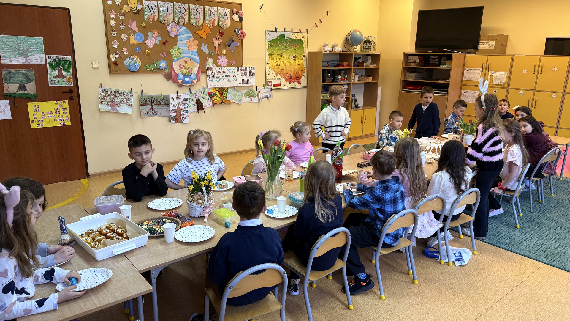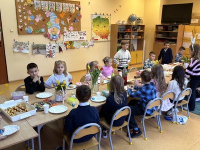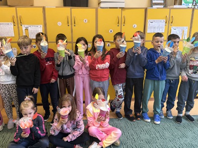 Z tej okazji dzieci sadziły rzeżuchę oraz tworzyły zabawne kurki, które okazały się nie tylko świetną zabawą, ale także doskonałym ćwiczeniem oddechowym 😊 Uczniowie oglądali również film o zwyczajach i tradycjach wielkanocnych, dzięki któremu mogli lepiej poznać znaczenie tych wyjątkowych dni.