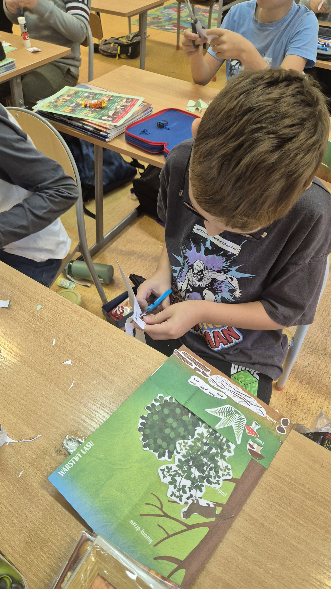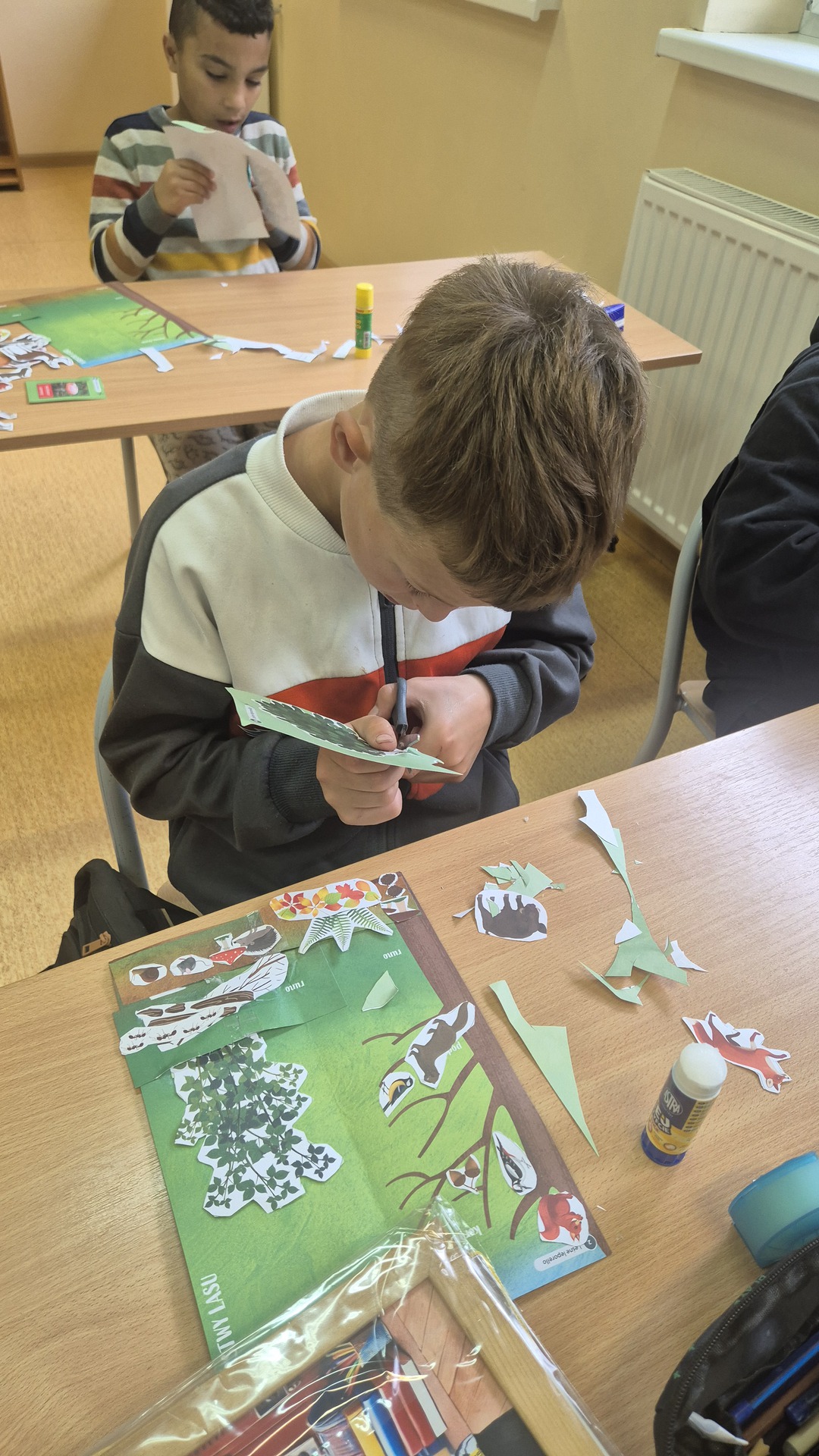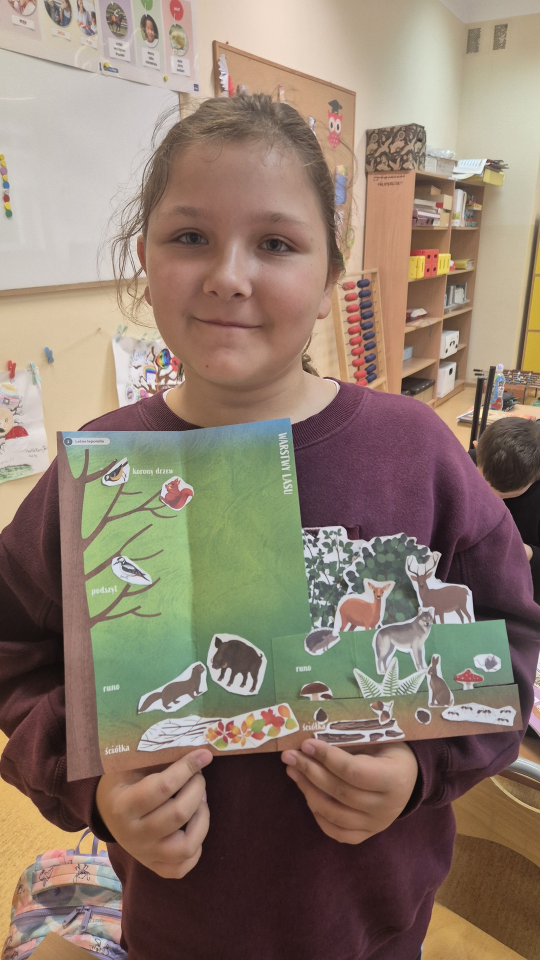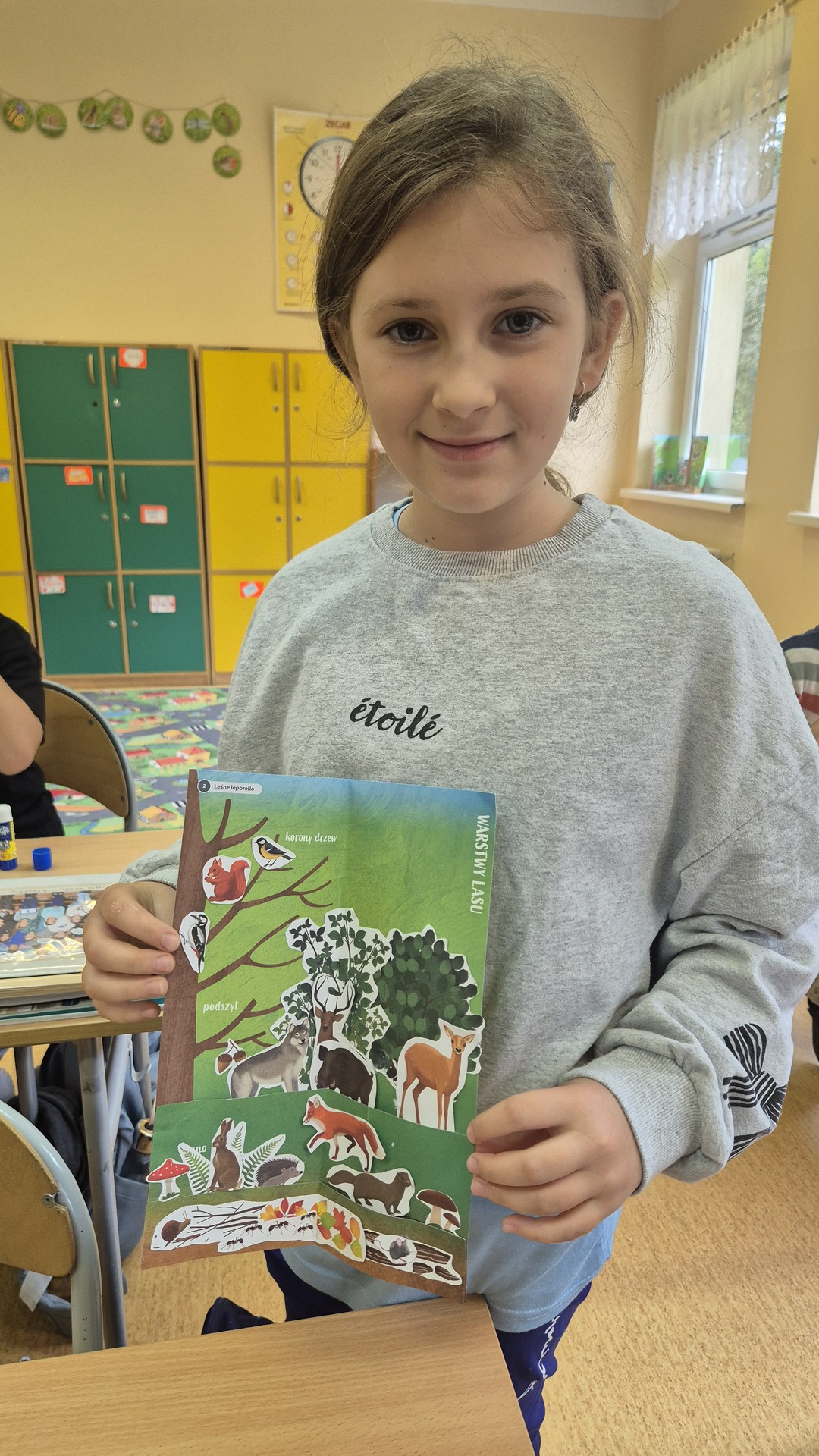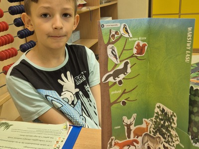 | Uczniowie klasy 3 w październiku wybrali się na spacer do pobliskiego lasu, aby w praktyce utrwalić wiadomości o warstwach lasu. Podczas wycieczki obserwowali rośliny i zwierzęta występujące w poszczególnych warstwach, a następnie wykonali pracę plastyczną przedstawiającą budowę lasu. Dzięki temu lepiej zrozumieli i zapamiętali omawiany temat. |
