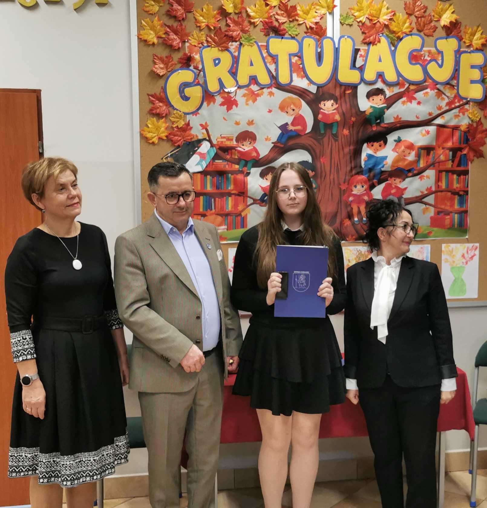 Dnia 26 września 2025r. gościliśmy w naszej szkole Wójta Gminy Chełmiec, pana Stanisława Kuzaka oraz dyrektora GZE, panią Kingę Broszkiewicz-Kuchno. Wręczyli oni dyplomy i nagrody uczniom, którzy w roku szkolnym 2024/2025 uzyskali bardzo dobre wyniki w nauce. Stypendium naukowe otrzymali: Zuzanna Czub Wiktoria Mróz Magdalena Górowska Dorota Poręba Adam Kumięga Zofia Kuc Klaudia Smajdor Gabriela Sowa Maja Froehlich Xavier Ślusarski Milena Legutko Honorata Smajdor Szymon Czub Julia Budnik Patryk Myrlak Wojciech leśniak Aleksandra Radom Kamila Jargut Bartłomiej Smajdor Adam Czub