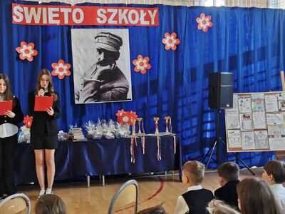 Dnia 4 grudnia 2025 roku społeczność naszej szkoły już po raz 19. uroczyście obchodziła Święto Szkoły. Był to dzień pełen wzruszeń, dumy, radości i wspólnego celebrowania szkolnych wartości. Wśród licznie przybyłych gości znaleźli się m.in.: Uroczystość poprowadziły uczennice: Zuzanna Czub oraz Natalia Ciureja. Spotkanie rozpoczęło się od odśpiewania hymnu szkoły w asyście pocztu sztandarowego. Potem uczniowie wzięli udział w emocjonujących konkursach: turnieju wiedzy o patronie szkoły oraz konkursie pieśni legionowych. Nie zabrakło wzruszeń, pięknych występów oraz gorącego dopingu dla uczestników. Druga część świętowania rozpoczęła się koncertem pieśni patriotycznych w wykonaniu szkolnego chóru, którego występ zachwycił publiczność. Następnie podsumowano wszystkie konkursy, które zorganizowano z okazji Święta Szkoły: turniej wiedzy o patronie, konkurs pieśni legionowych, konkurs kaligraficzny, konkurs literacko-plastyczny oraz multimedialny „TOP 10 – najciekawsze miejsca Marcinkowic”, Turniej Tenisa Stołowego o Puchar Dyrektora Szkoły. W sali gimnastycznej można było podziwiać prace uczniów wyeksponowane na wystawie. Na konkurs literacko-plastyczny „TOP 10 – najciekawsze miejsca Marcinkowic” złożono 19 prac w formie rysunków oraz leporello, natomiast na konkurs multimedialny – 14 prezentacji wykonanych indywidualnie lub w parach. Konkurs kaligraficzny na najładniejsze przepisanie tekstu pieśni legionowej cieszył się największym zainteresowaniem, bo wykonano aż 33 prace. Gratulujemy laureatom konkursów: