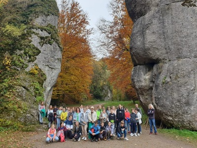 W dniach 19.10.2021 – 20.10.2021 klas VII i VIII Szkoły Podstawowej w Marcinkowicach uczestniczyły w wycieczce do Krakowa i Ojcowskiego Parku Narodowego. Dzięki staraniom szkoły część kosztów wyjazdu pokryta została z dotacji z Małopolskiego Urzędu Marszałkowskiego w ramach Programu „Odkrywamy Małopolskę II”. Opiekę nad uczestnikami wycieczki sprawowali nauczyciele szkoły: Elżbieta Kulig, Marzena Leśniak, Tadeusz Widomski, Robert Cempa. Uczniowie z wielkim zadowoleniem wspominają wyjazd: „Pierwszy dzień wycieczki zaczęliśmy od zwiedzania Krakowa. Mieliśmy tam wiele doświadczeń, zwiedzaliśmy ZOO. Potem udaliśmy się na spacer bulwarem nad Wisłą a następnie zwiedziliśmy Wawel. Następnie obejrzeliśmy inne ciekawe miejsca Krakowa, m.in. ul. Kanoniczą, Uniwersytet Jagielloński, Rynek, Sukiennice, Bramę Floriańską. Około godziny 17:30 udaliśmy się na obiadokolację, po której pojechaliśmy do hotelu. Tak zakończył się dzień pierwszy. Drugi dzień zaczęliśmy od śniadania w hotelowej restauracji. Następnie pojechaliśmy do Ojcowa, aby zwiedzić Ekspozycję Przyrodniczą oraz Ojcowski Park Narodowy. Zwiedzanie parku narodowego rozpoczęliśmy od spaceru Doliną Prądnika, a następnie udaliśmy się do Groty Łokietka. Potem zwiedziliśmy zamek w Pieskowej Skale, a następnie podziwialiśmy Maczugę Herkulesa. Po zakończonym zwiedzaniu ruszyliśmy w drogę powrotną. Do Marcinkowic dotarliśmy około godziny 19:30.” Dzięki trosce nauczycieli wycieczka się udała, a dzieci wróciły zadowolone i pełne wrażeń. |